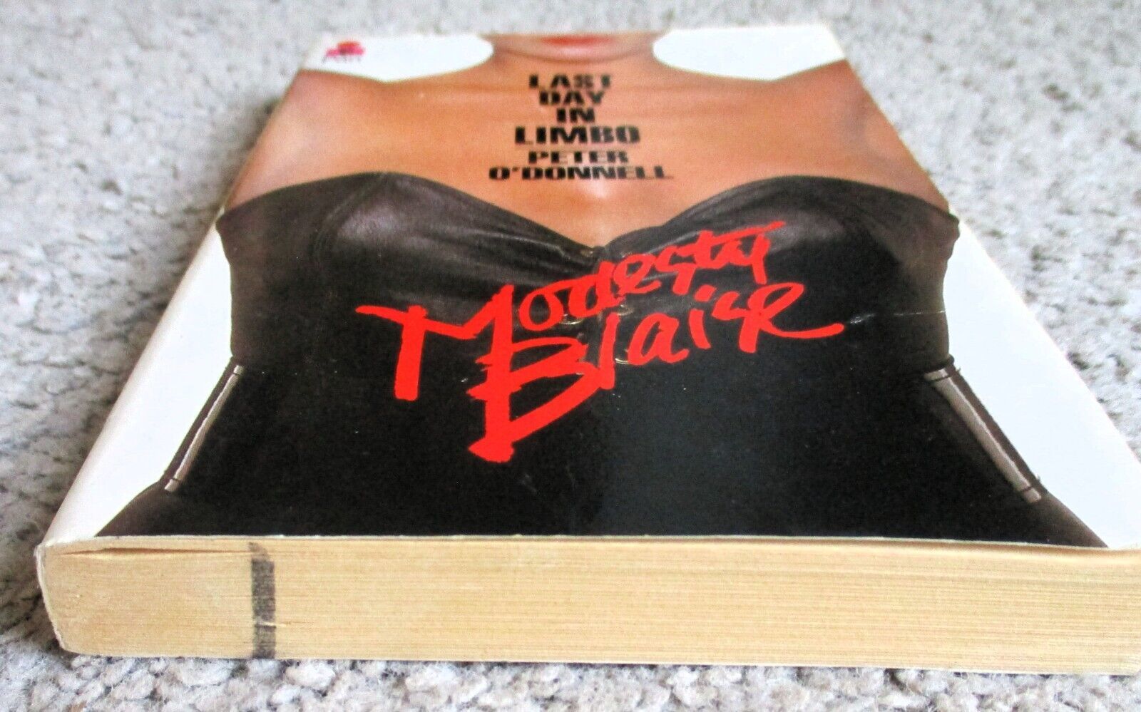Vintage 240 page mass market paperback titled LAST DAY IN LIMBO by Peter O'Donnell/ Pan Books Ltd., ISBN #0-330-25142-2, Second Printing, Copyright 1983/ Modesty?s latest adventure takes place in the jungles of South America, where she and her loyal henchman, Willie Garvin, take on the evil Mistress of Limbo. The Mistress has enslaved the people of Limbo, including Modesty?s friend Danny. After a failed kidnapping, Modesty learns of her friend?s enslavement and sets out to rescue him and set Limbo free. In an adventure that spans London, Switzerland, and New York City, Modesty ends up in Guatemala, where the Mistress of Limbo has commanded that Modesty be sacrificed to the gods. With Willie at her side, Modesty must fight a Mayan priestess to free herself and the slaves on what will be the last day in Limbo.