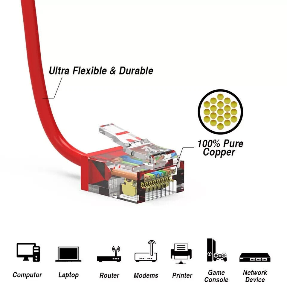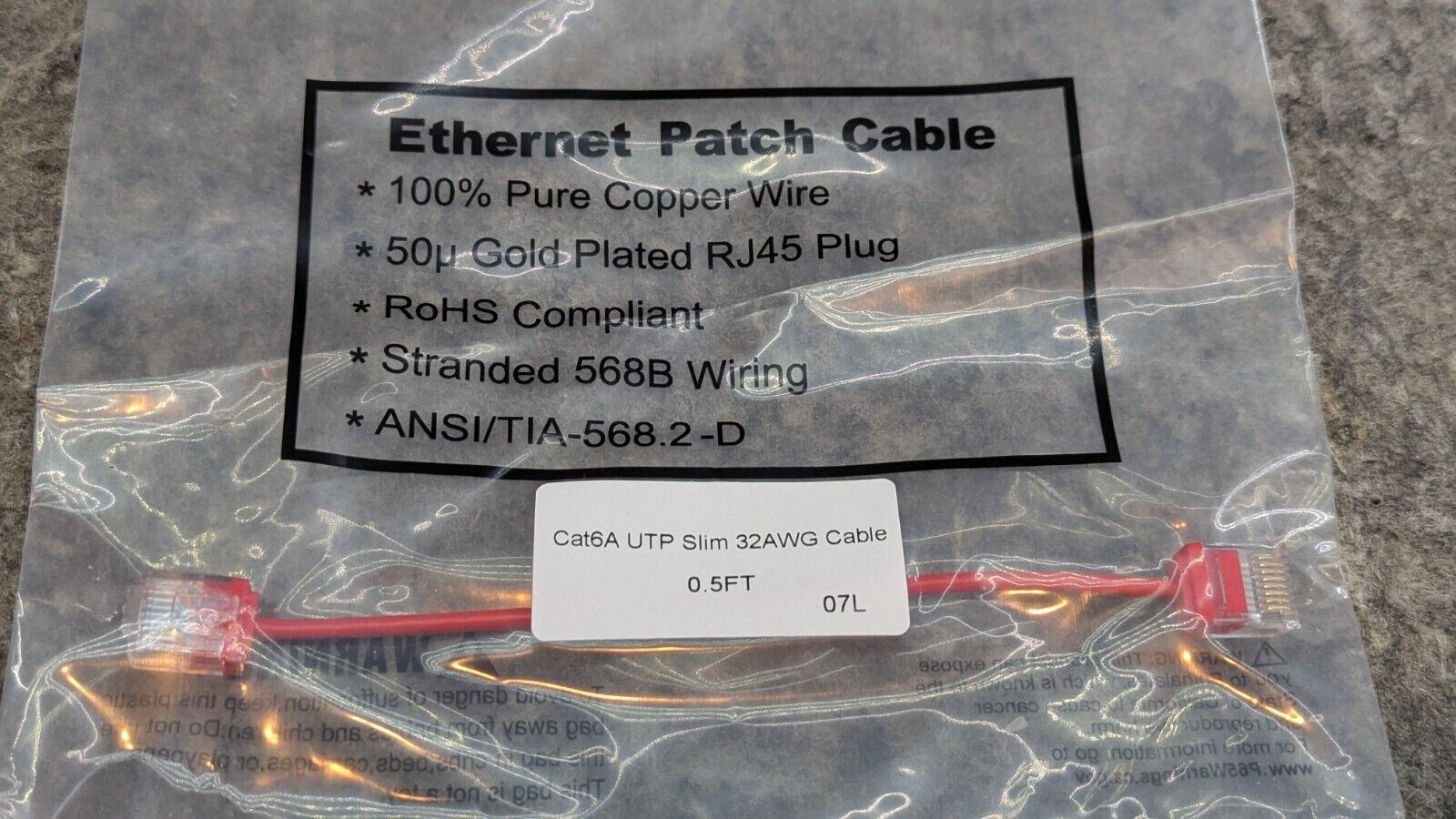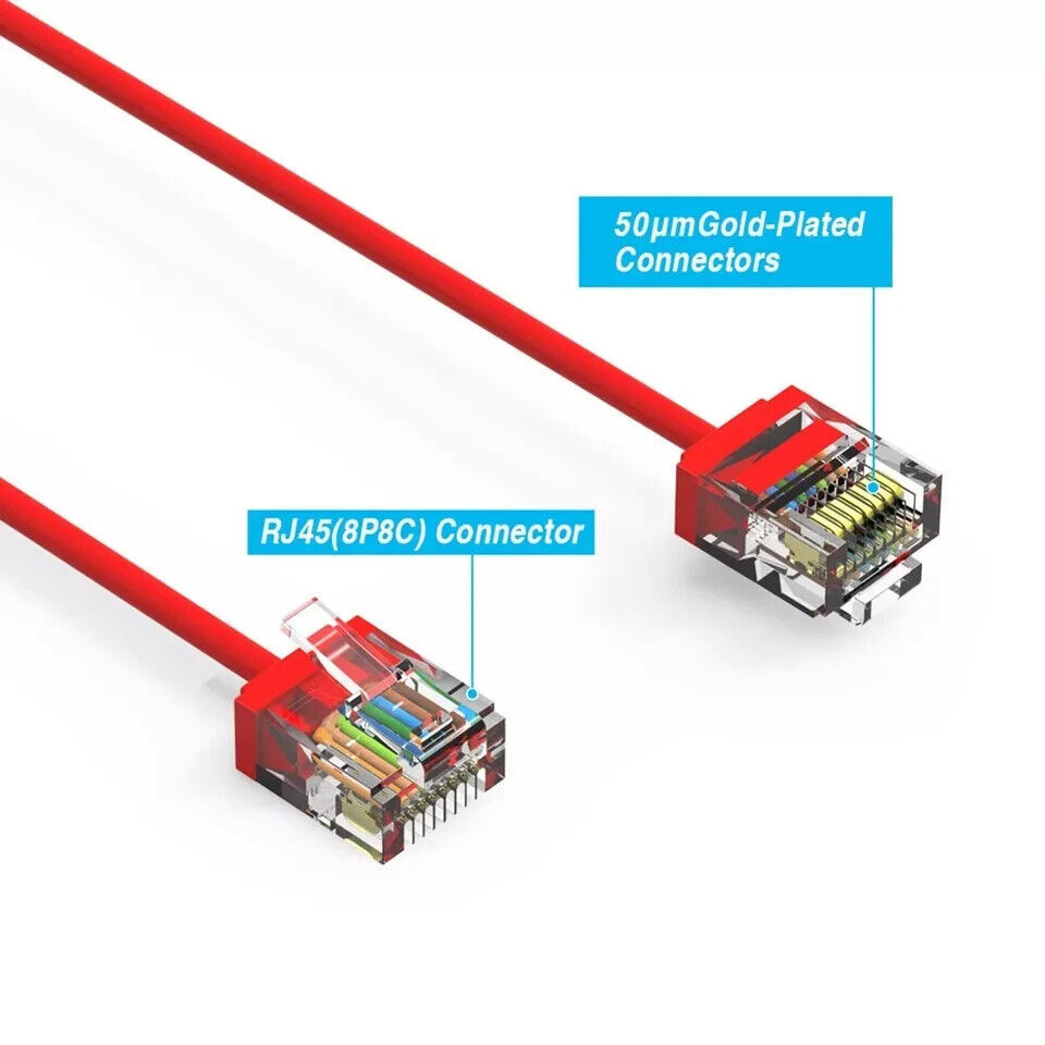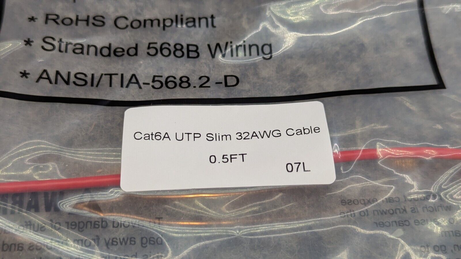 10 New 0.5FT Cat6A RJ45 Super Slim LAN Ethernet UTP Patch Cable Cord 32AWG Red