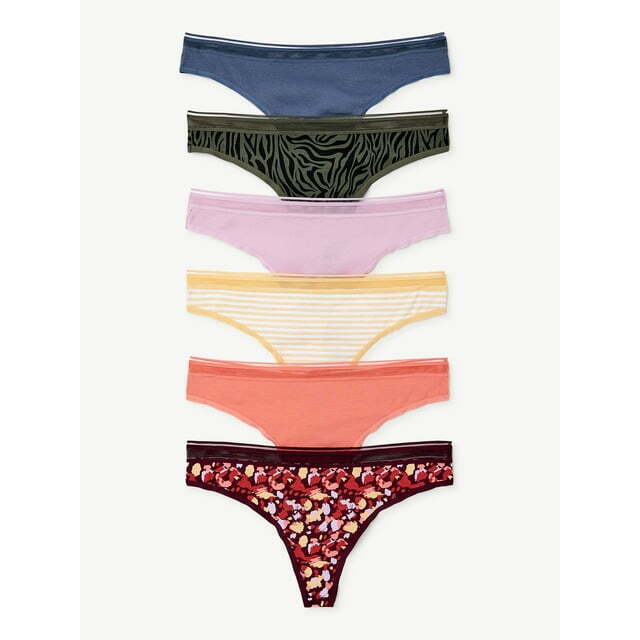 Joyspun Women's Cotton Thong Panties, 6-Pack, Assorted Color Size M (8-10)