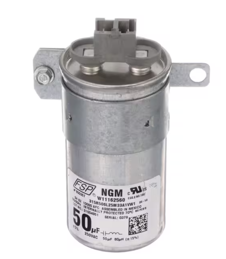 Whirlpool W11162560, 31004951, Capacitor, Run, 250 V, 50/60HZ, 50uF, Washer