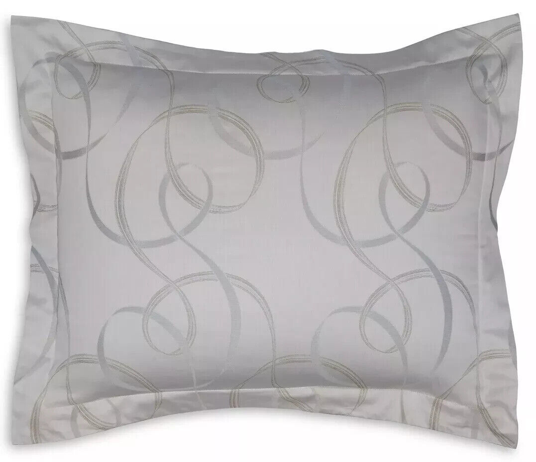 Sferra Caravino Tin Standard Sham Grey Swirling Ribbon Sateen Jacquard Italy NEW
