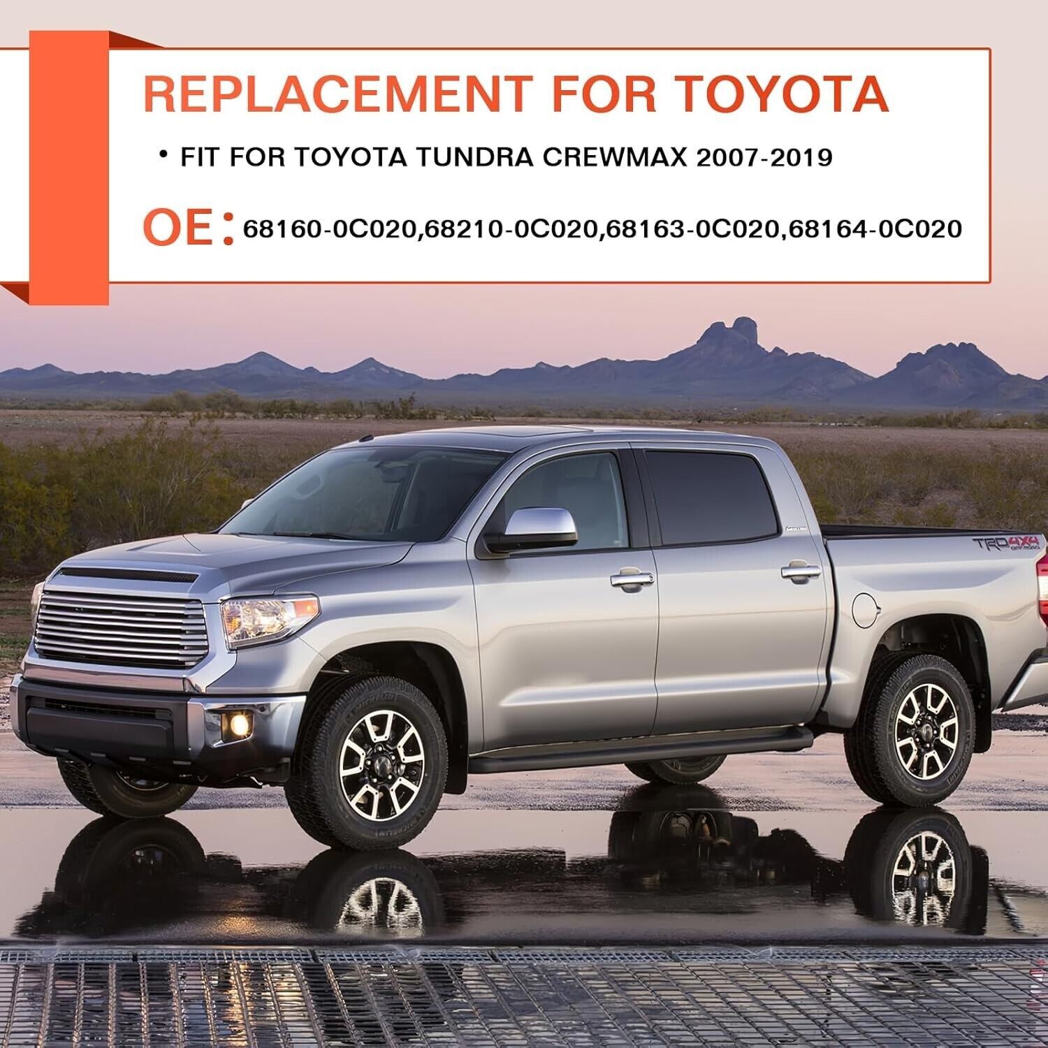 ?Replace OE Number Fit for Toyota Tundra Crewmax Weather Stripping?: OE: 68160-0C020 68210-0C020 68163-0C020 68164-0C020? Please check the OEM Number whether it fits your vehicle before purchasing