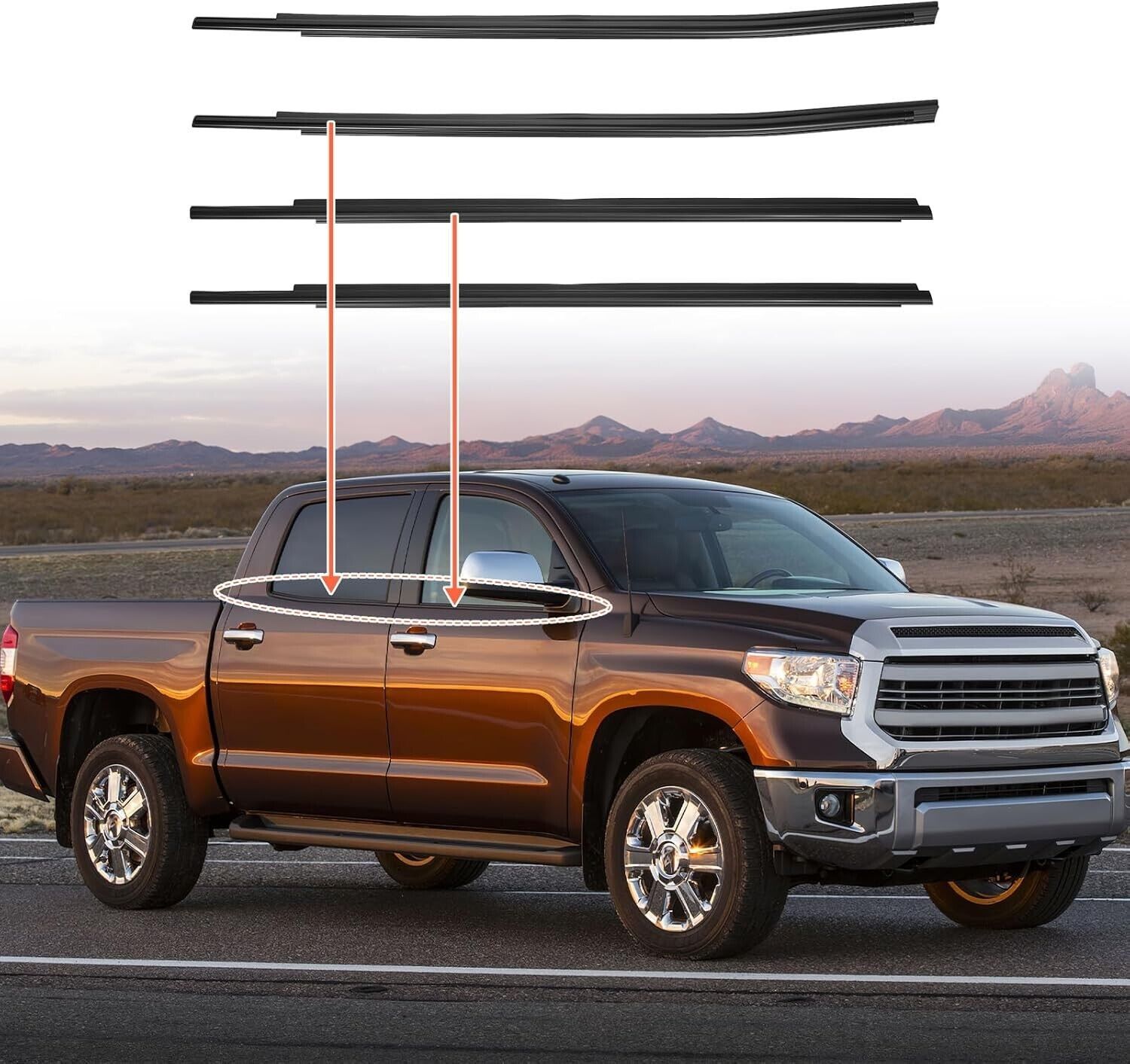 ?Strong waterproof performance? Installing the Tundra Outer Window Weatherstrip will stop car leaking, prevent Rain and debris from entering the door, strong waterproof, dust-proof and rainproof performance,improve the sealing performance, reduce the noise caused by bumps thus make the driving more comfortable