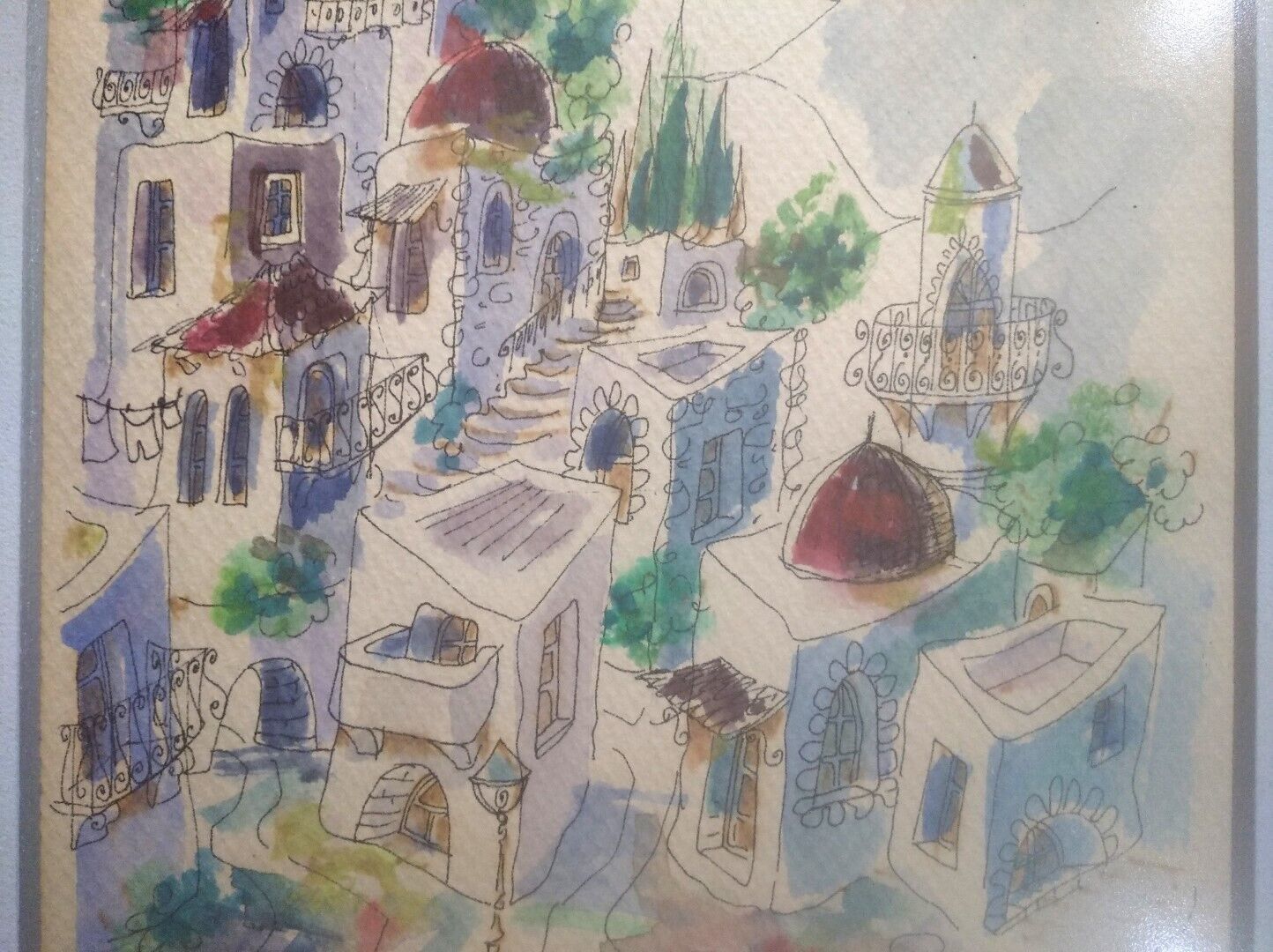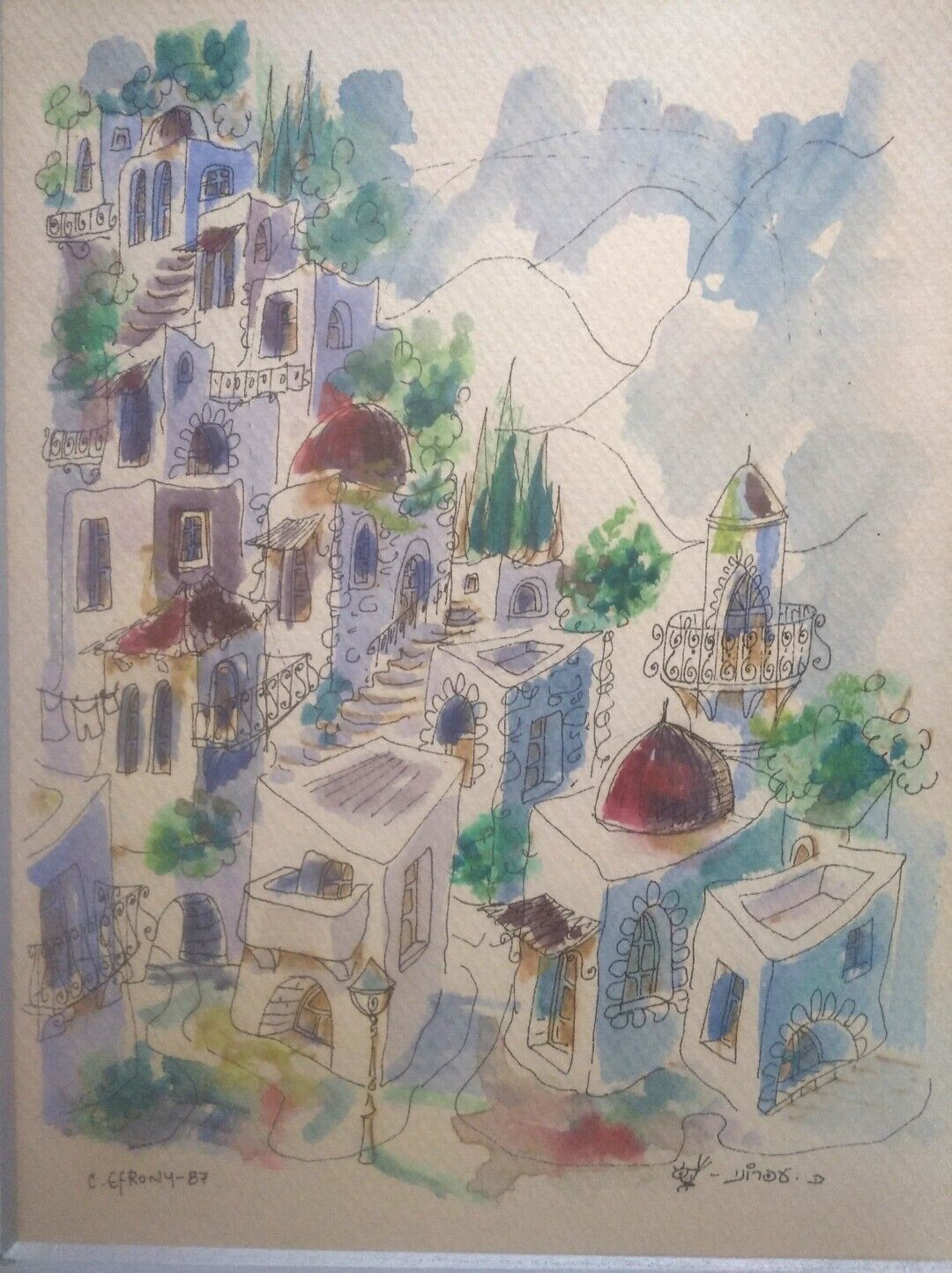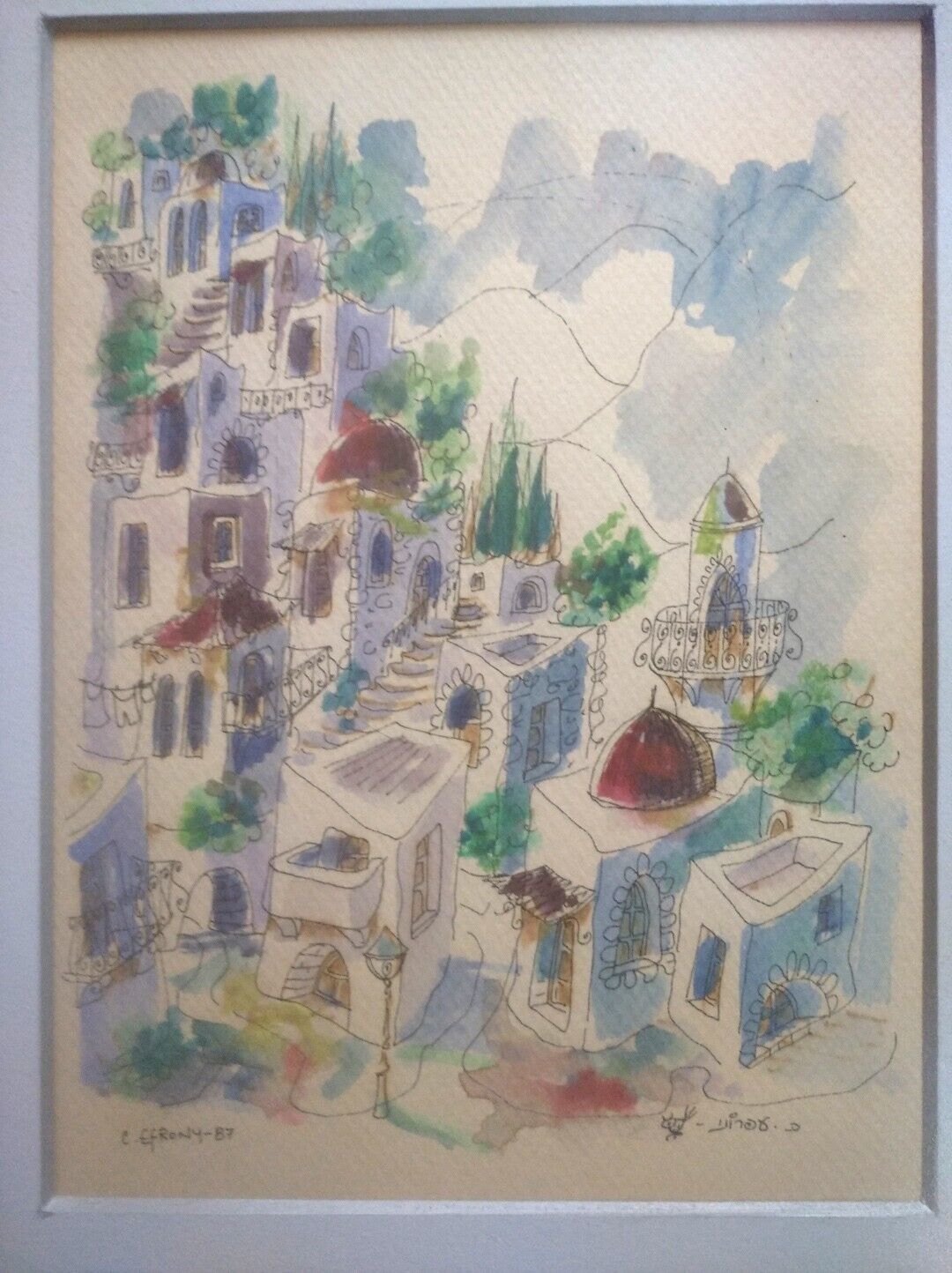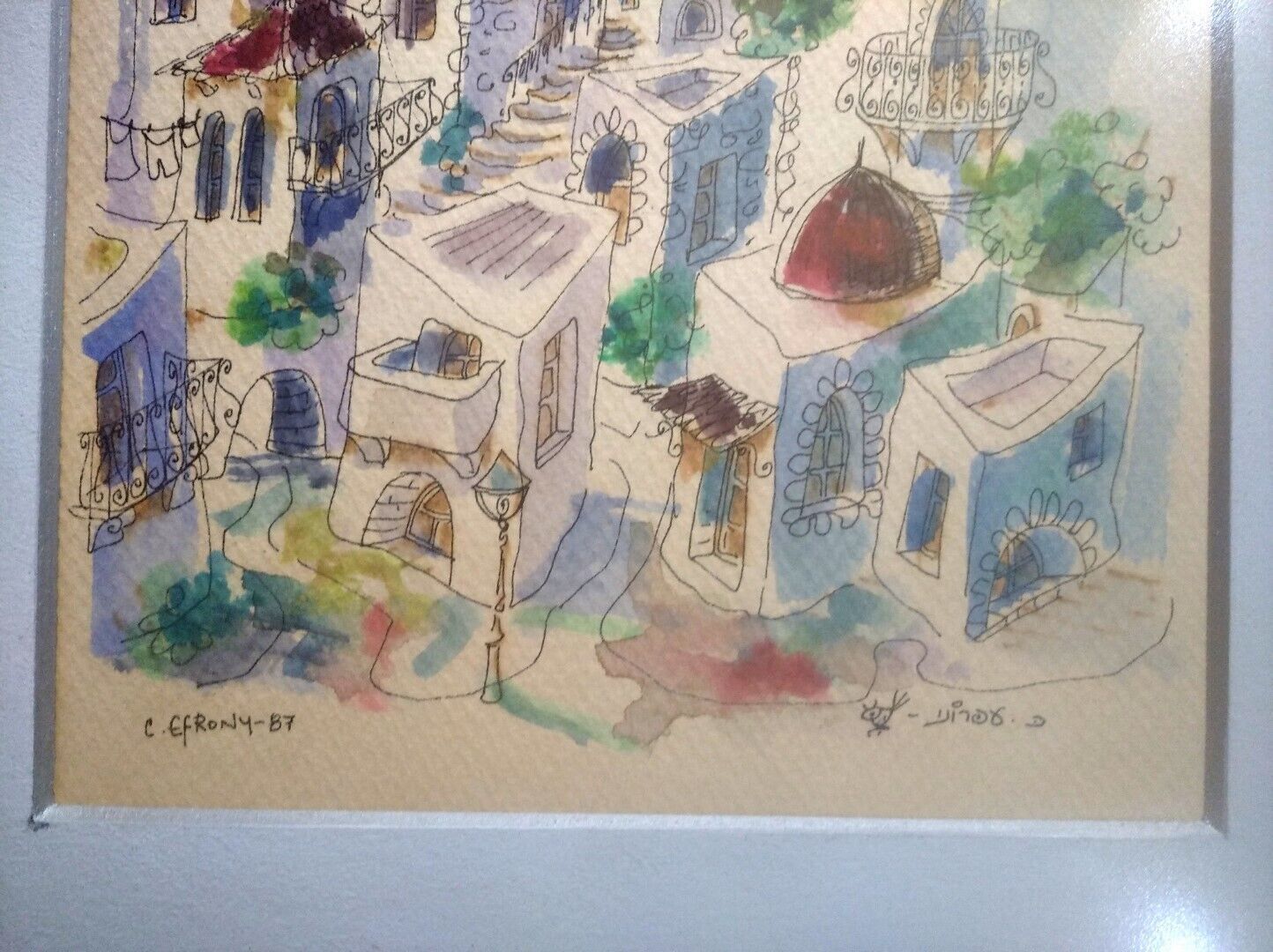 Catriel Efrony Listed Israeli Vintage 1987 Colorful Painting Safed Scene 32 x 24