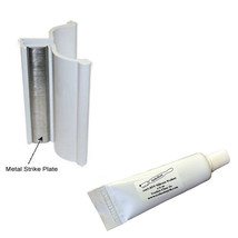 For Retrofit or New Installation No Glass Fabrication Required Please note that this item is not a magnet. Set includes: 3" Frameless Shower Door Handle with Metal Strike and Rubber Gasket - for use with glass 1/8", 5/32", 3/16", 1/4" thick. Clear 100% Pure RTV Silicone Sealant - 0.5 oz. Squeeze Tube Finish: White Handle Size: 3 in Installation Instructions: The included rubber gasket is ONLY for use with 1/8" glass. Place the rubber gasket over the edge of the glass on the desired area and apply the handle over the gasket (this may require gentle tapping with a rubber mallet).For glass thicker than 1/8" or if the handle is too tight, do not use the gasket. Use included Pure Clear Silicone Sealant 100% RTV - 0.5 oz. Squeeze Tube.