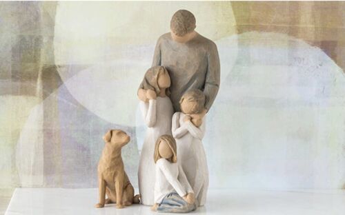 Willow Tree sculptural art forms beautifully express love, closeness, healing, courage, hope? all the emotions of a life well lived. Artist Susan Lordi hand carves the original of each figure from her studio in Kansas City Missouri. Pieces are cast from her original carvings, and individually painted by hand. Expression is revealed through gestures only? a tilt of the head, placement of the hands, a turn of the body. The simplicity of form and absence of facial features signify Willow Tree. It is Susan?s hope that these pieces be meaningful to both giver and receiver.