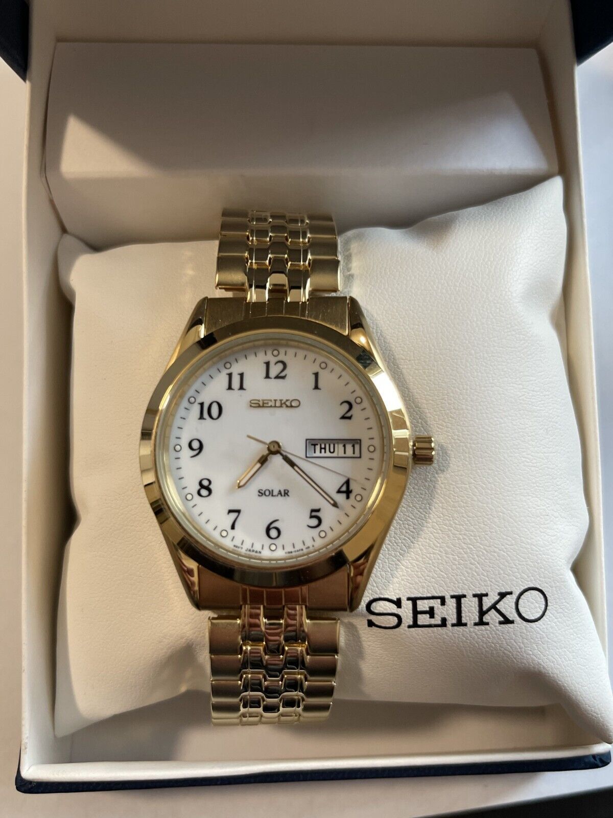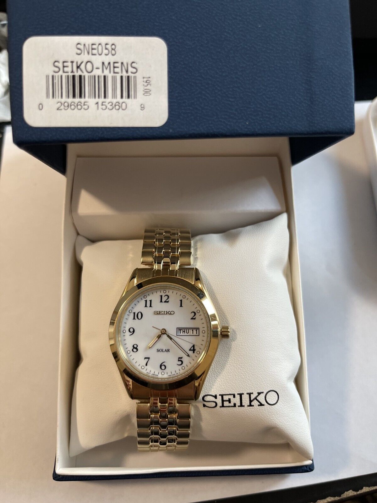 NEW* Seiko SNE058 Men's White Dial Stainless Steel Gold Tone Dress Watch
