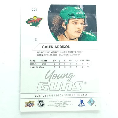 2021-22 Upper Deck Series 1 Young Guns #227 Calen Addison Rookie RC Hockey NHL