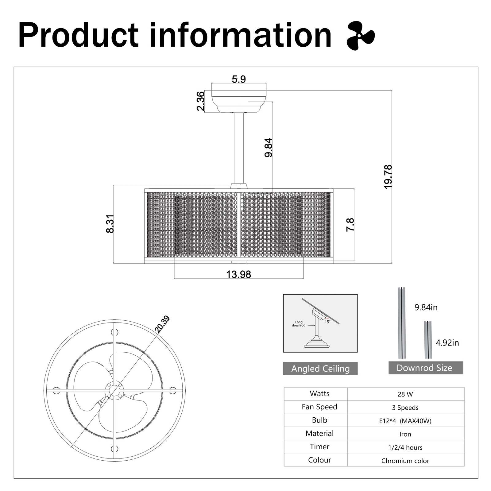 Noiseless Ceiling Fan w/Remote: 20.4" 3-Blade and 50 similar items