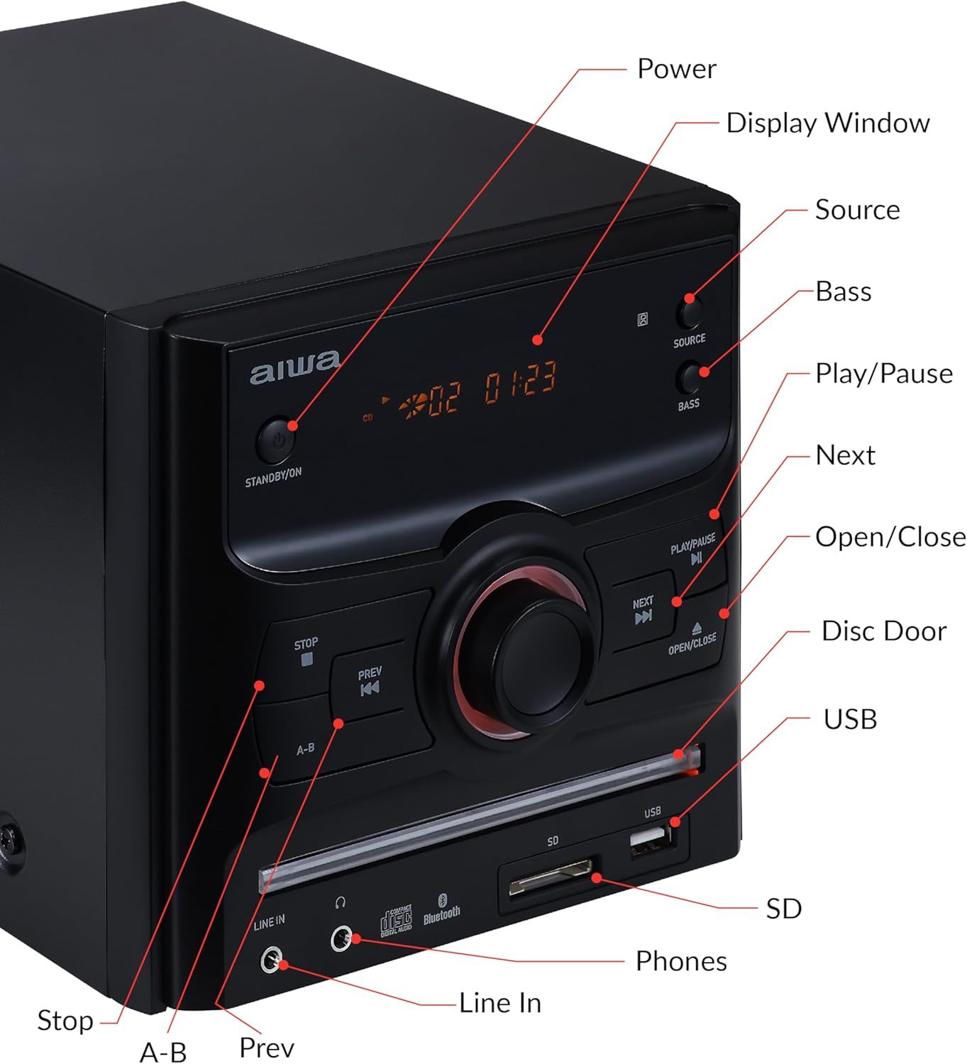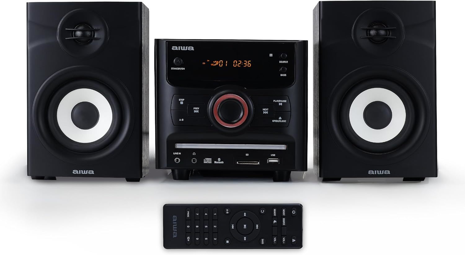 60-Watt Power Output for Robust Sound: Experience powerful and immersive audio with the 60-watt micro system, designed to deliver high-quality sound that fills any room effortlessly, making it perfect for both casual listening and lively gatherings Superior Room-Filling Sound with Two-Way Speakers: Exceptional audio performance from the two-way home speakers, which provide clear, rich, and dynamic sound, ensuring that every beat is heard with precision and depth Versatile Music Playback Options: Easily listen to your favorite CDs with the front-loading CD player, tune into FM radio with preset stations for a variety of programming, or connect via AUX input and USB playback, for a wide range of music choices Advanced Bluetooth 5.0 Connectivity: Seamlessly stream music wirelessly from your Apple and Android devices, tablets, and laptops with Bluetooth 5.0, ensuring stable connections and high-quality audio transmission, so you can enjoy all your playlists Convenient Remote Control: Effortlessly control your home stereo system from a distance with the included remote control, allowing you to adjust settings, switch between modes, and manage your music with ease