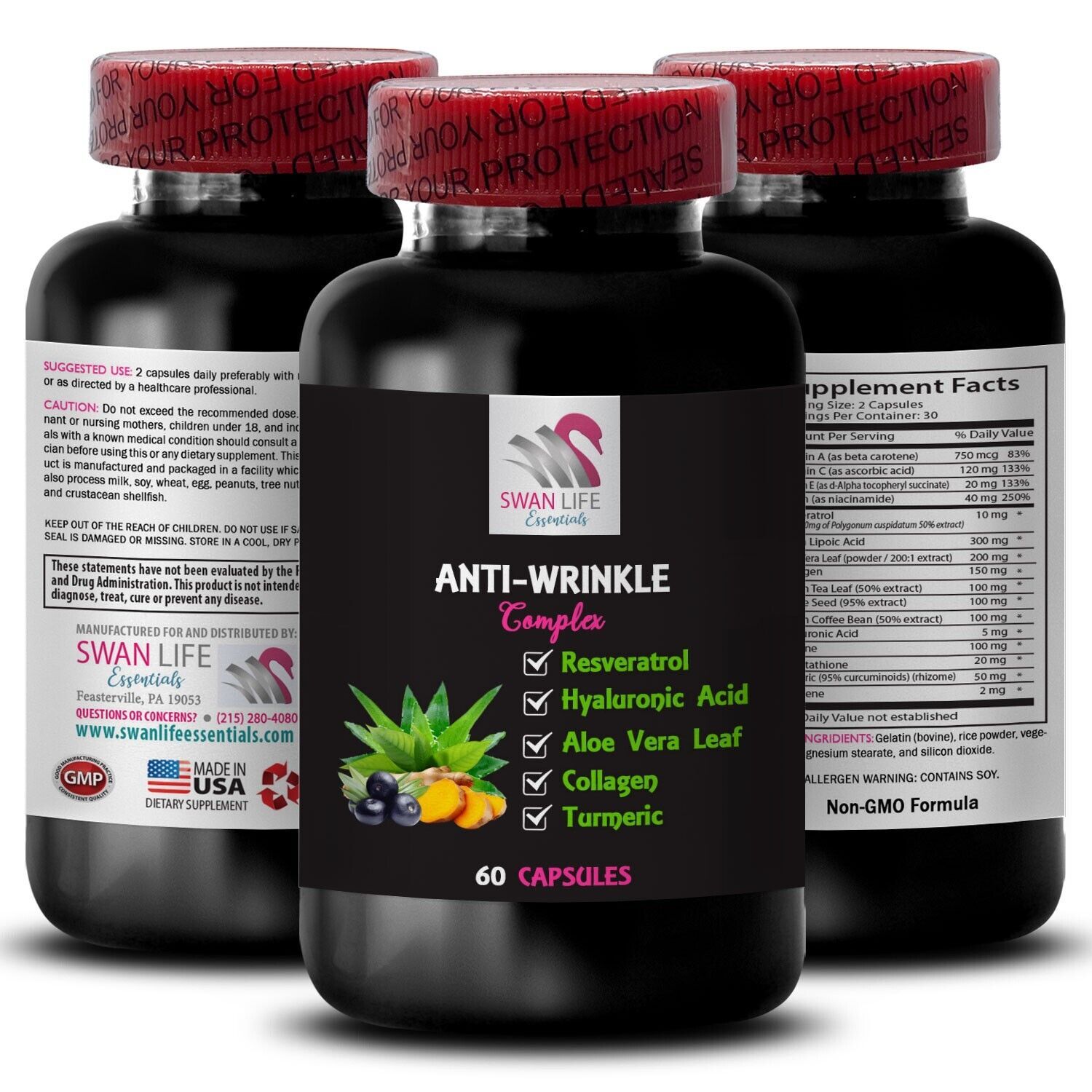 ANTI-WRINKLE COMPLEX: Our Premium anti-wrinkle complex is made with the high-quality ingredients, Vegan, Non-Gmo, Gluten-free. This solution is safe and effective for wellness. Manufactured in an NSF certified and GMP compliant facility, SWAN LIFE ESSENTIALS ensures strict adherence to quality standards throughout the production process.