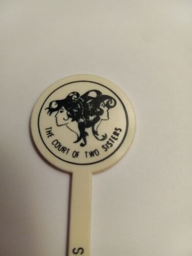 The COURT of Two SISTERS 613 Rue Royal, French Quarter, New Orleans, Louisiana Swizzle Stick. Light wear but still very nice for a collection. Measures 6 inches. SPIR-IT USA.
