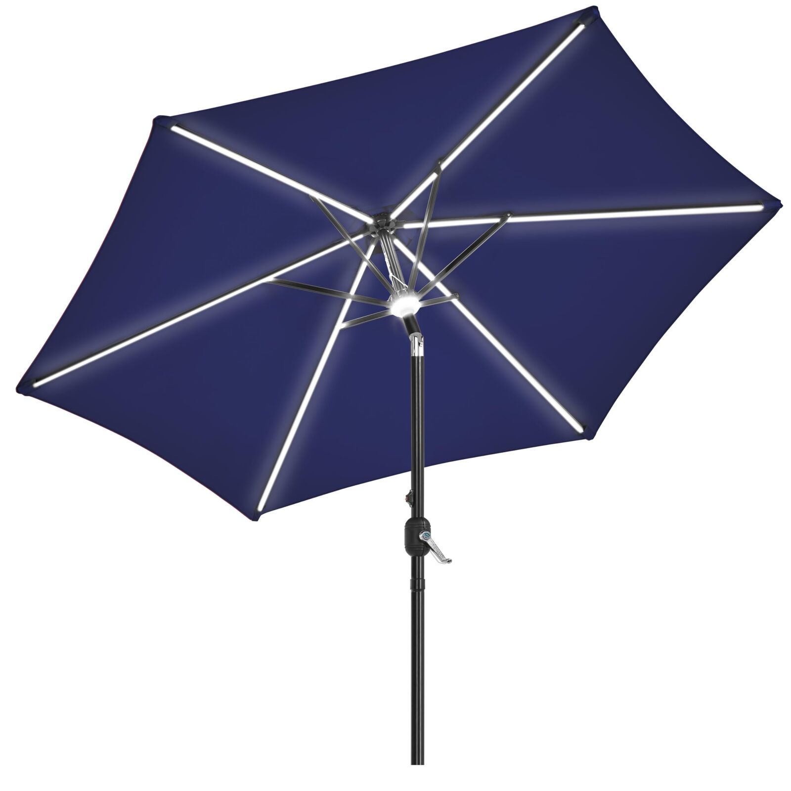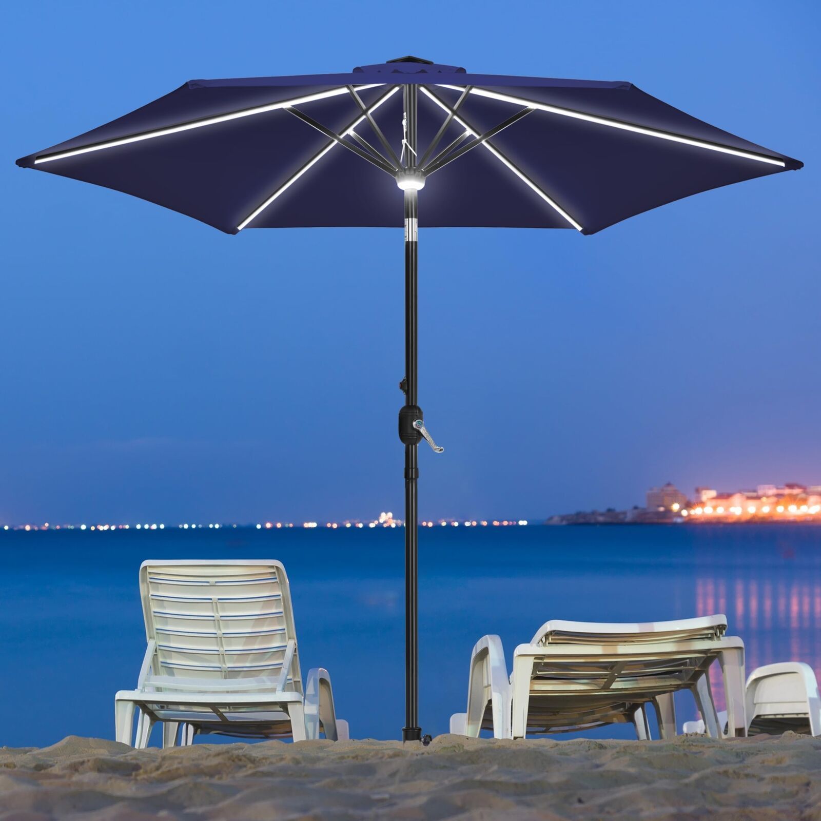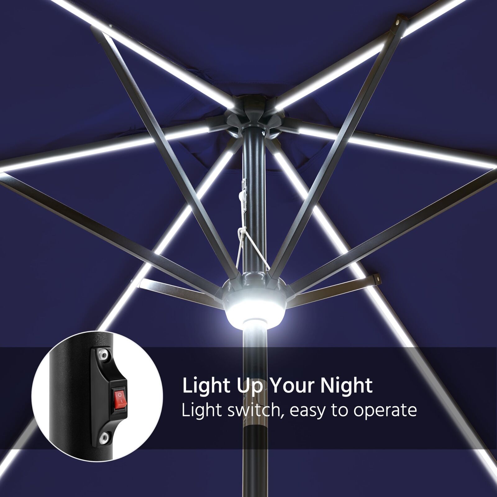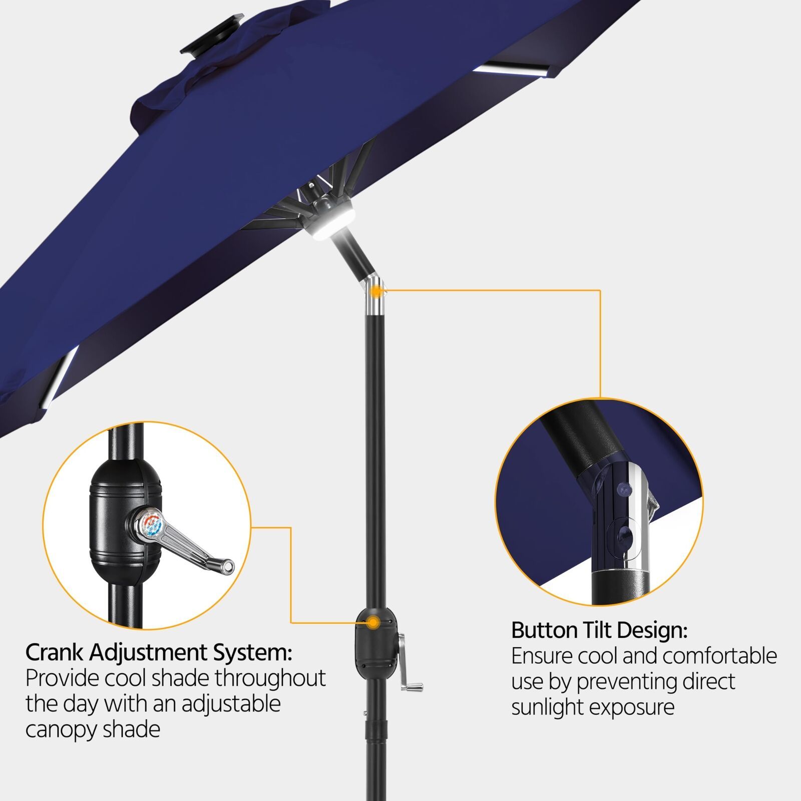 Yaheetech 9FT Solar Lighted Patio Umbrella Large Outdoor Sunshade with Strip Lights Hub Light, LED Table Market Umbrellas w/Crank Tilt for Courtyard Deck Beach Pool, Navy Blue