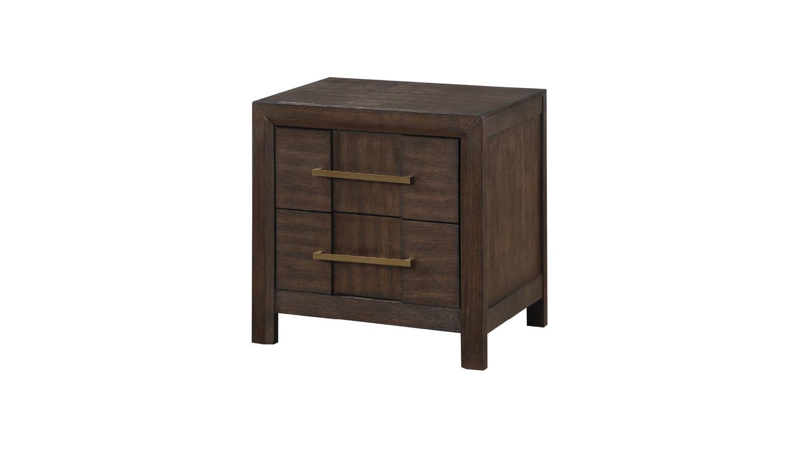 This modern-style Kenzo 2-Drawer Nightstand showcases sleek lines and minimalist design, perfect for contemporary bedroom settings.