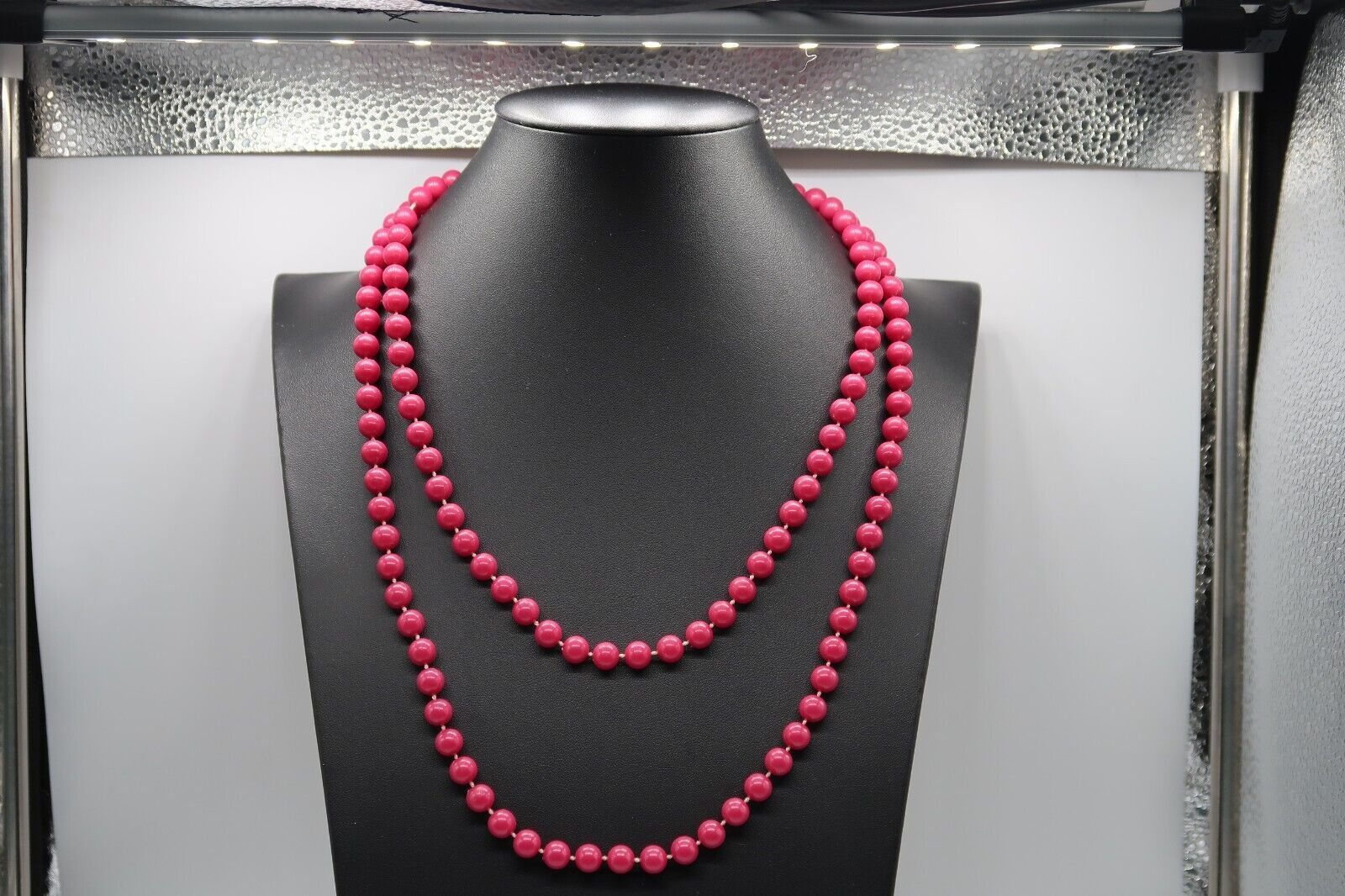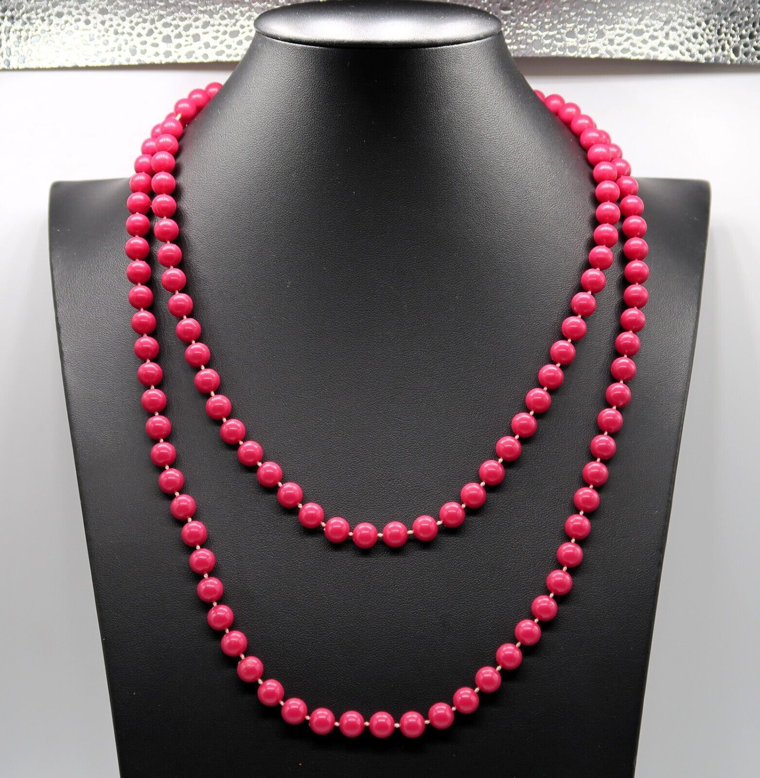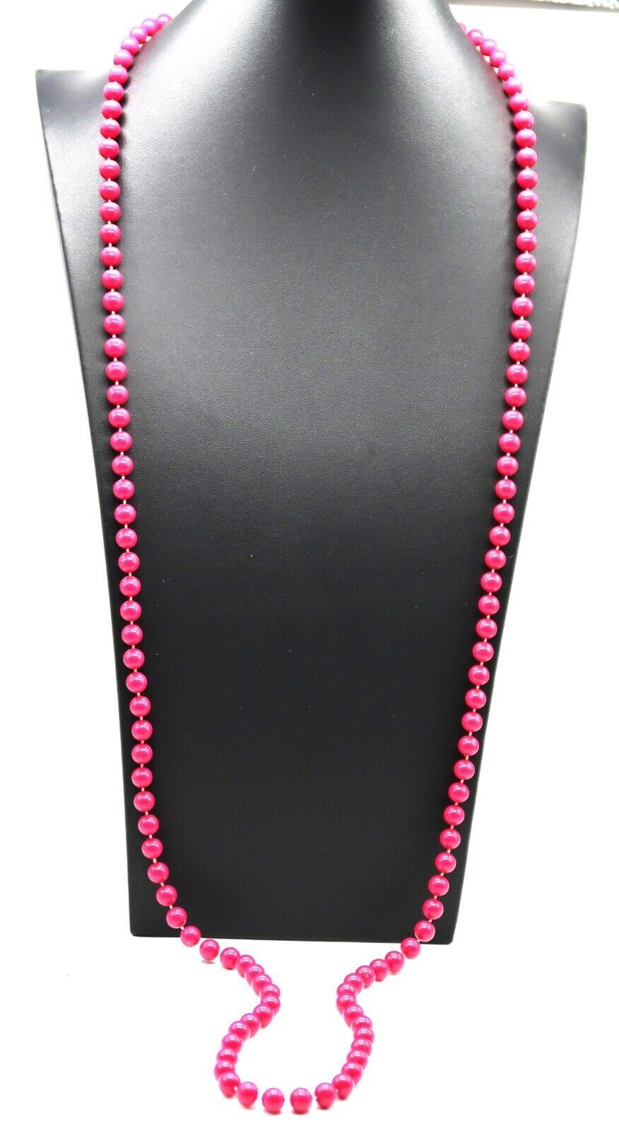 Vtg Pink Bead Beaded Long Opera Flapper Necklace 46" Statement Fashion Jewelry