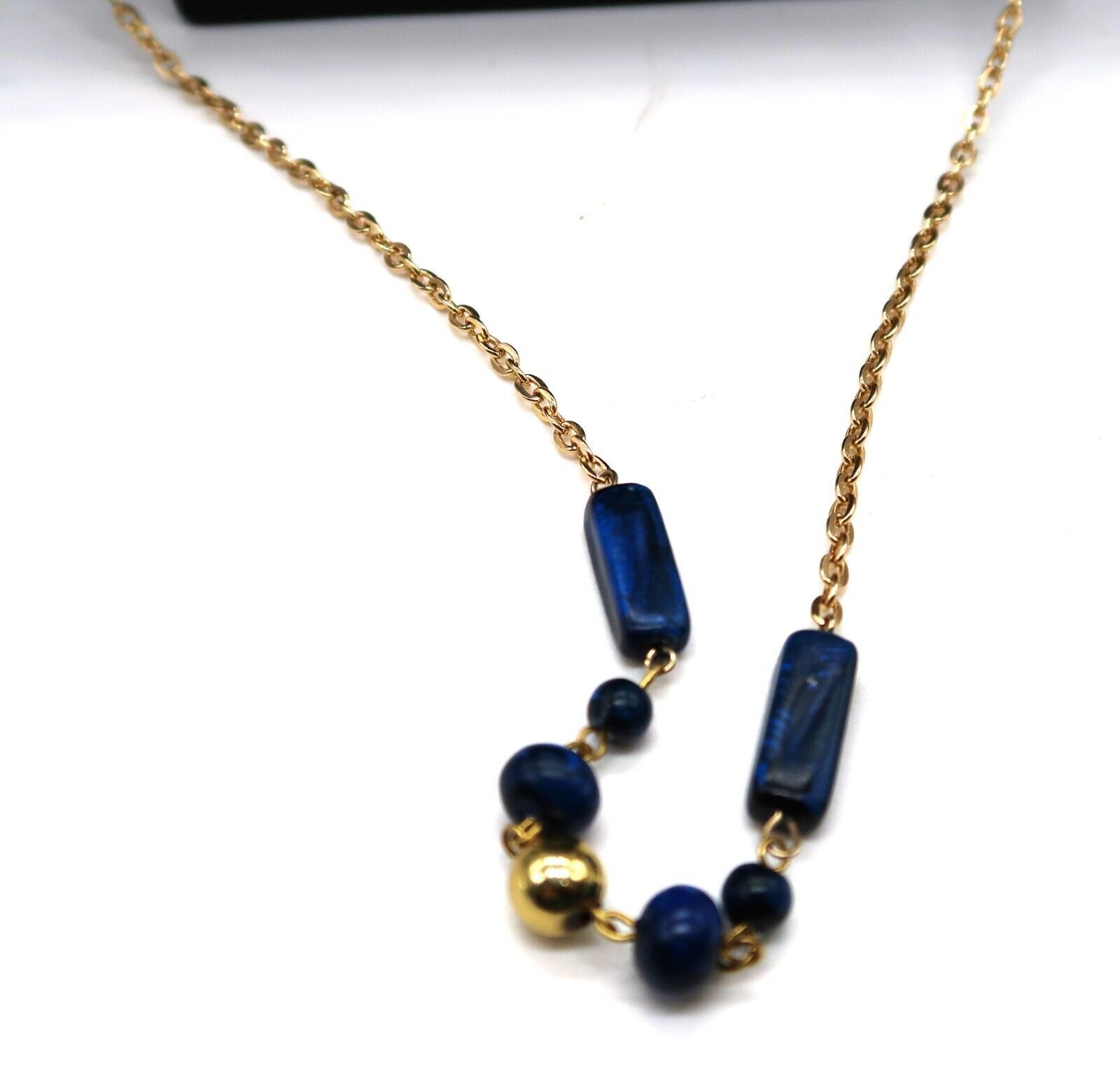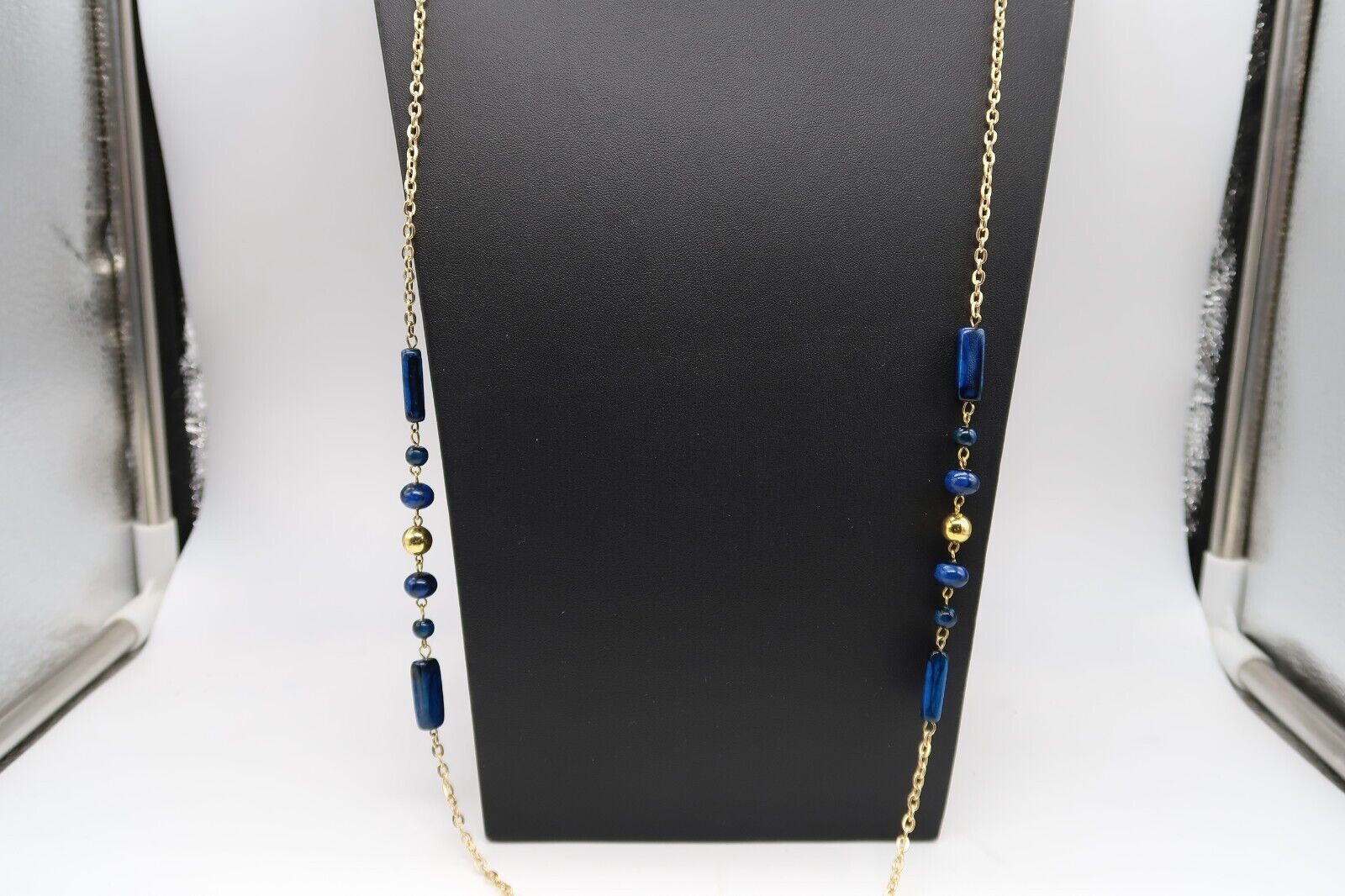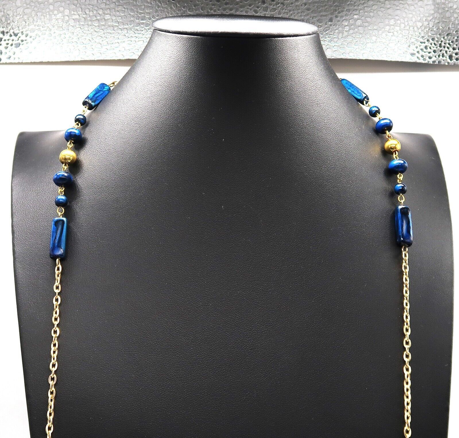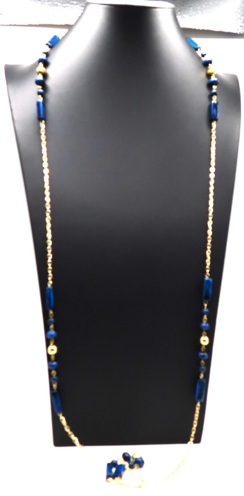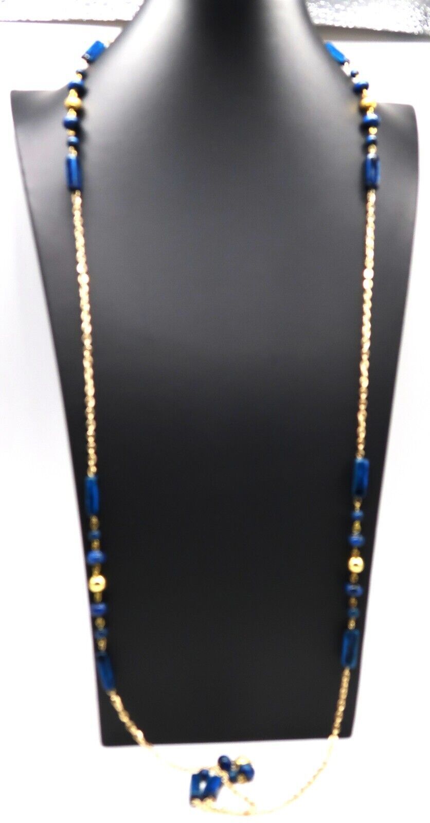 Vtg Blue Bead Faux Lapis Opera Flapper Necklace 46" Statement Fashion Jewelry