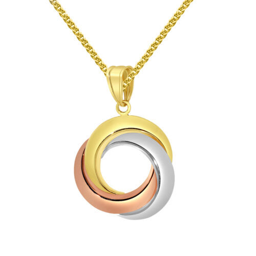 Genuine 14k Tri-Tone Gold 1.02" Round Infinity Pendant Necklace 16" to 24"