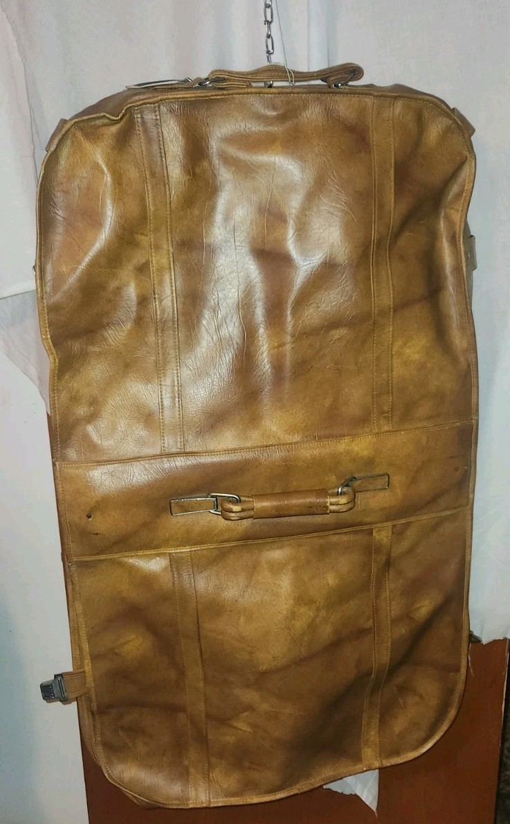 Vintage American Tourister Brown Leather Vinyl Travel Suit Folding Bag Hanging