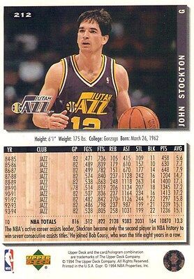 G) 1994-95 Upper Deck Collector's Choice Card John Stockton #212 Utah Jazz