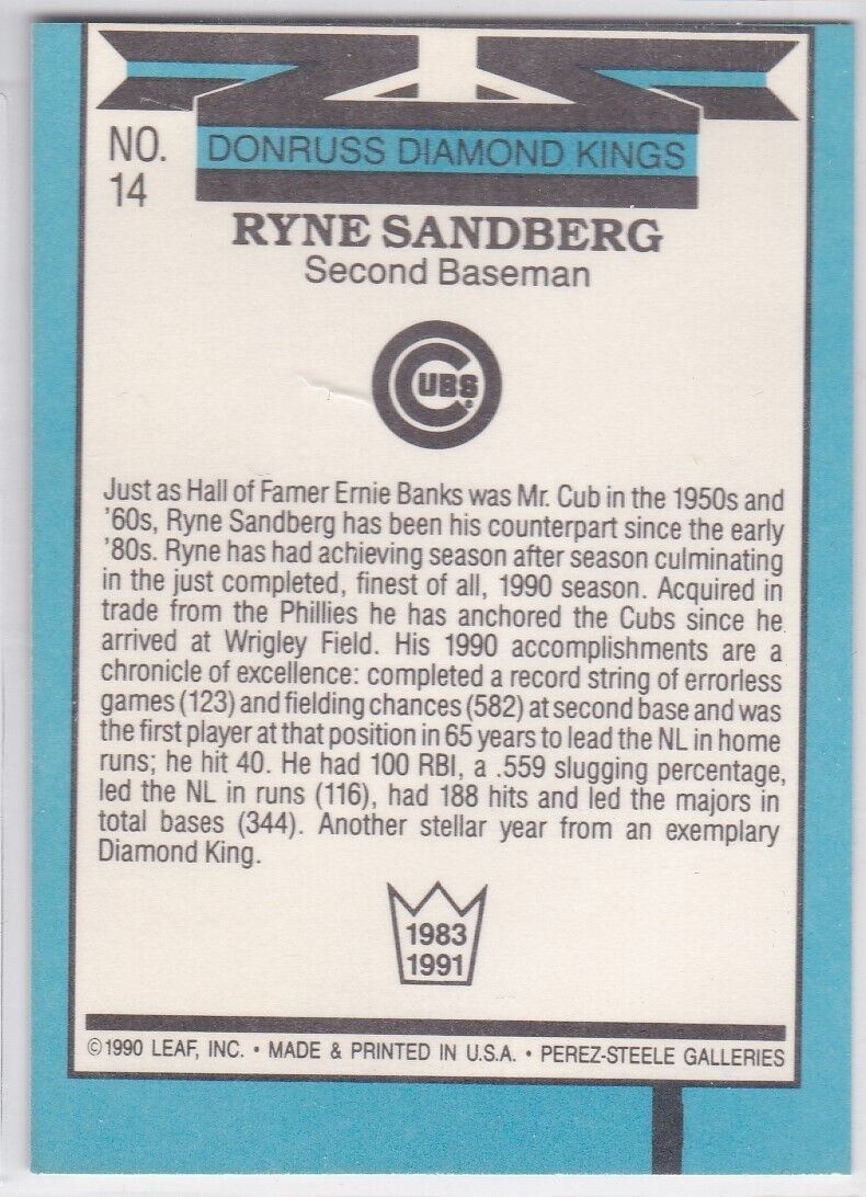 M) 1991 Donruss Baseball Trading Card - Ryne Sandberg #14