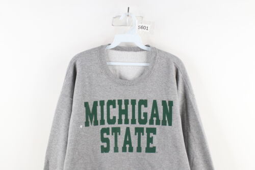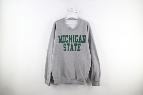 Vtg 90s Mens XL Distressed Spell Out Michigan State University Sweatshirt Gray