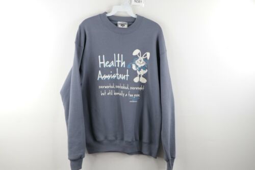 Vintage 90s Mens Medium Health Assistant Fun Person Funny Sweatshirt Steel Blue