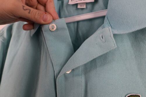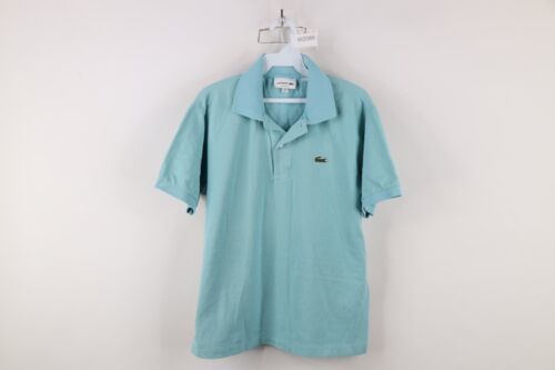 Lacoste Mens FR 4 US Medium Distressed Croc Logo Collared Golf Polo Shirt Blue