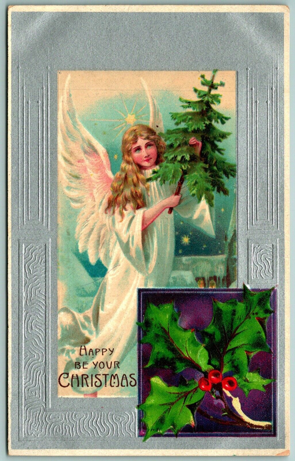 Angel w Tree Foiled Embossed Happy Christmas UNP Unused DB Postcard J11