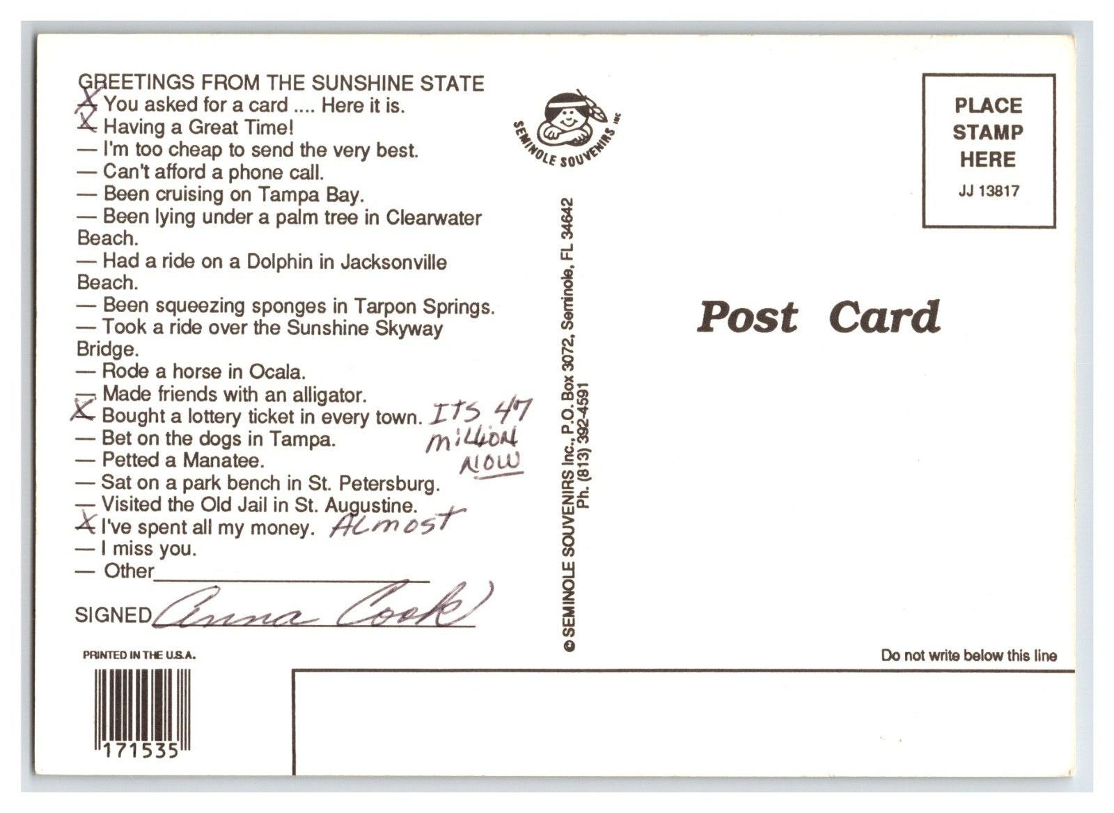 Generic Barcode Greetings Florida FL UNP Continental Postcard O21