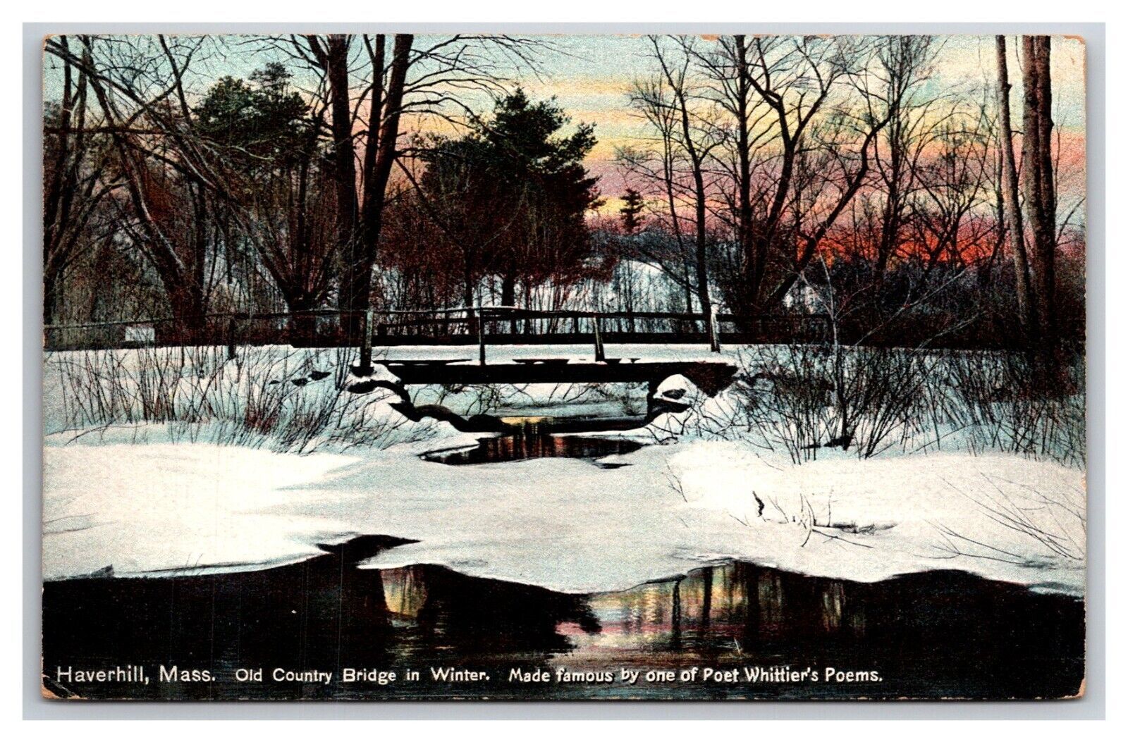 Old County Bridge in Winter Haverhill Massachusetts MA UNP DB Postcard Z10
