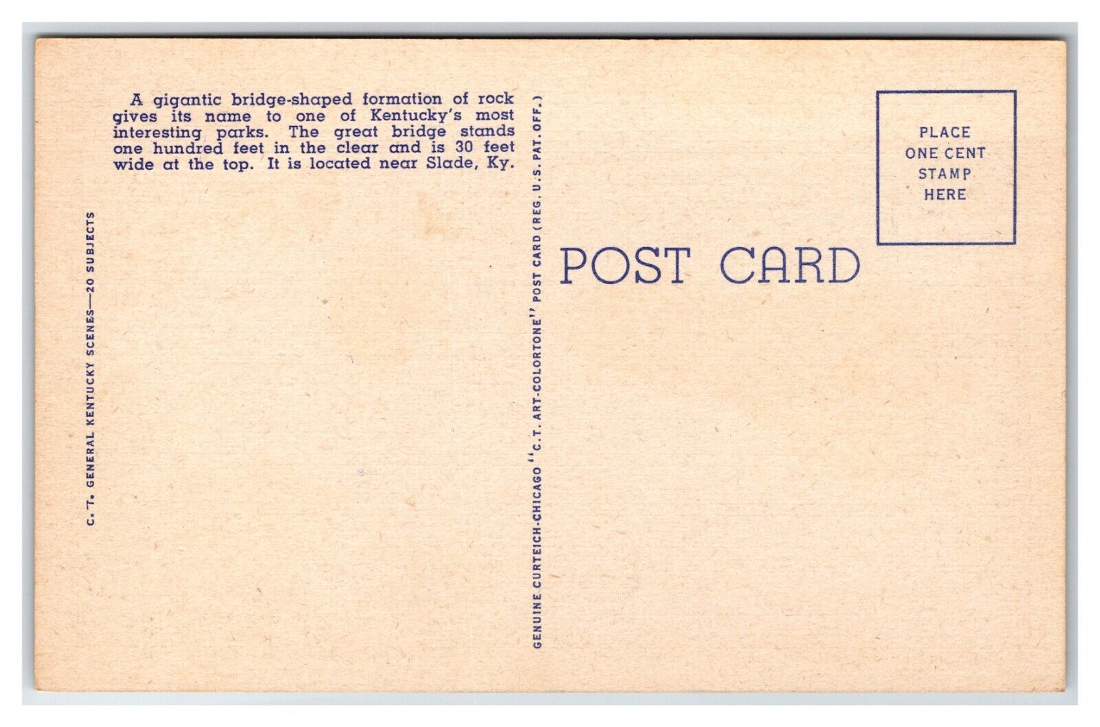 Natural Bridge State Park Slade Kentucky KY UNP Linen Postcard XA10