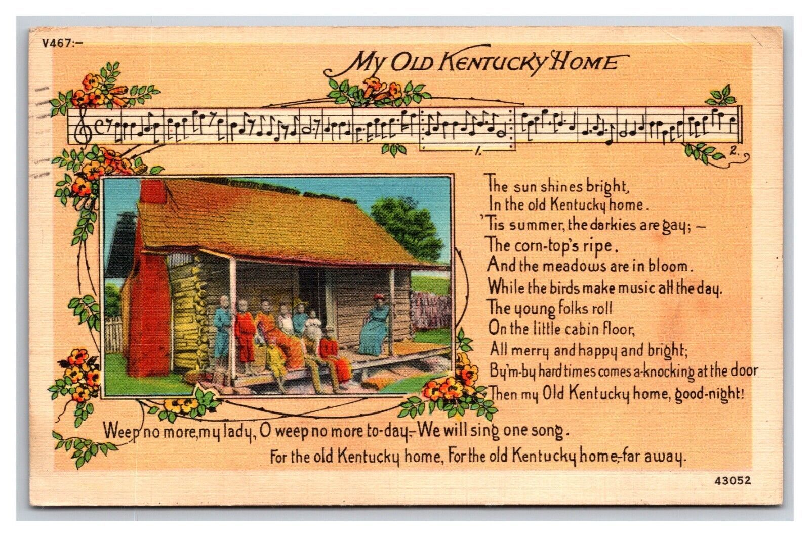My Old Kentucky Home Song Lyrics KY Linen Postcard XA10