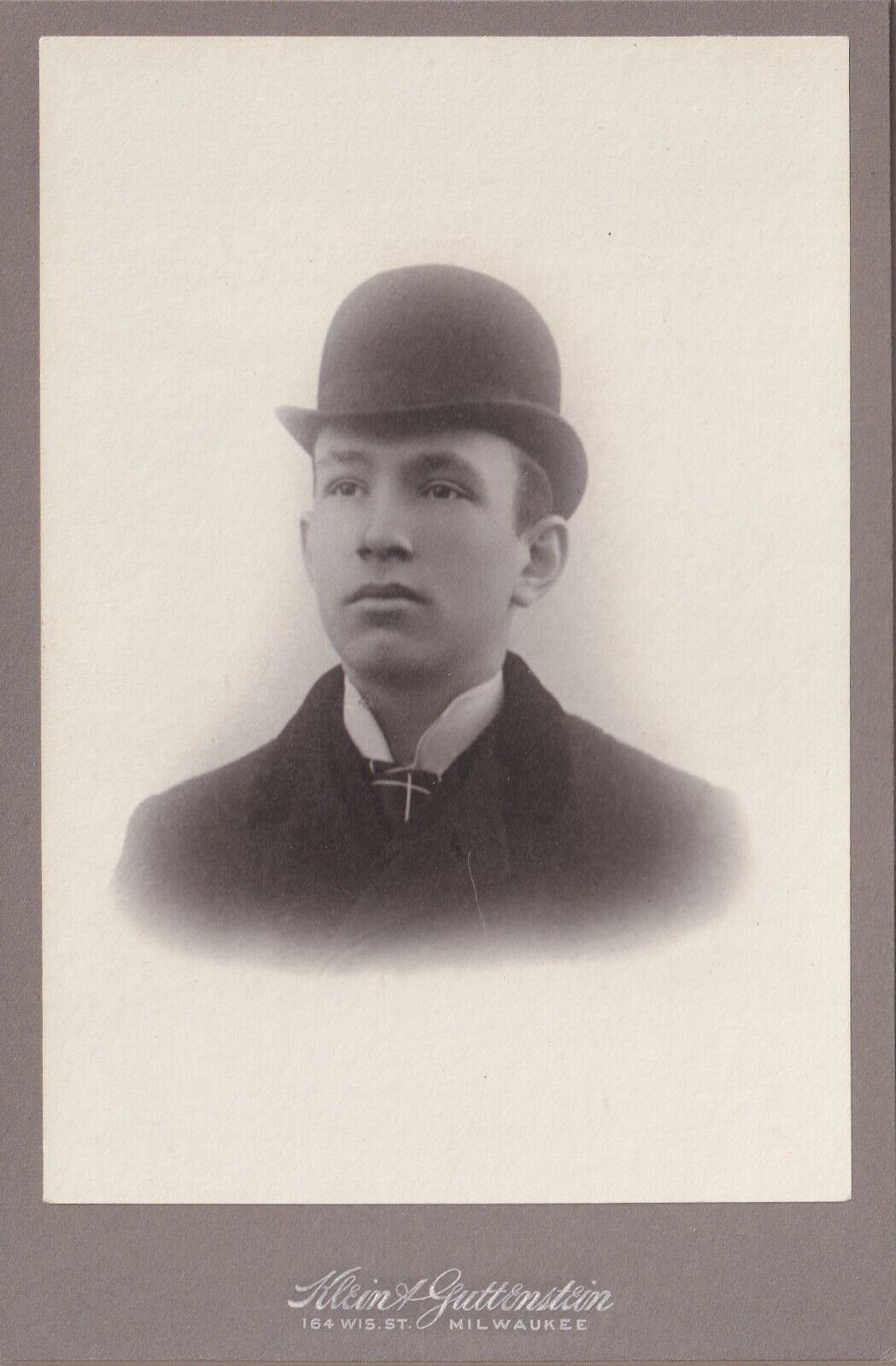 Vtg Cabinet Photo Adolf Neidecker - Handsome Young Man Bowler Hat Milwaukee