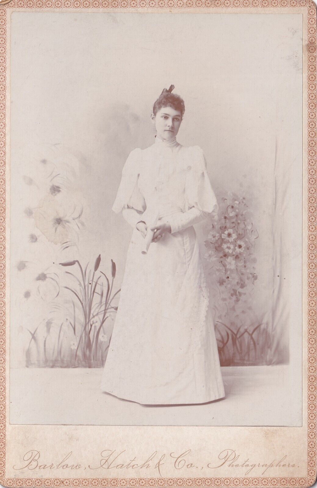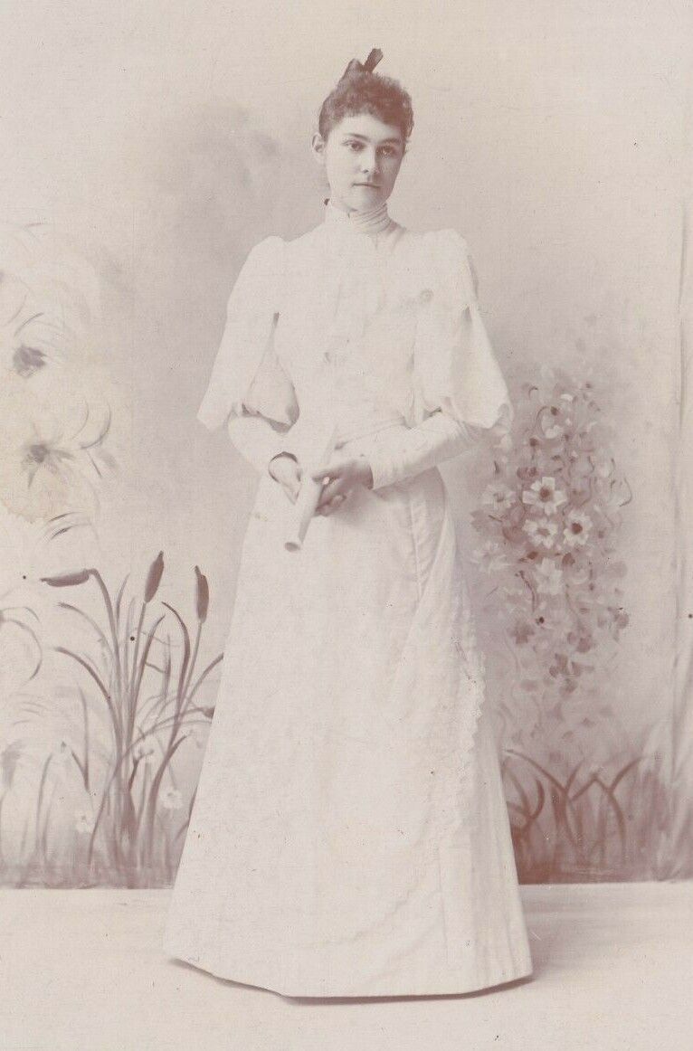 Antique Cabinet Card - Harietta Walbrant Young Woman White Dress Barlow & Hatch