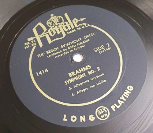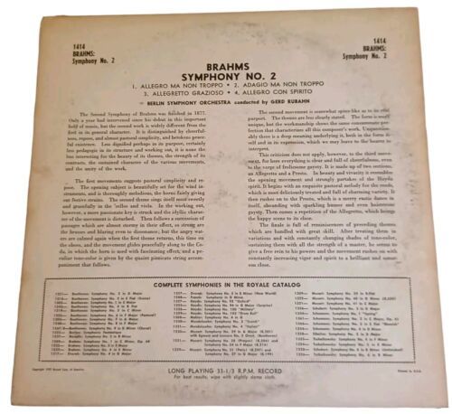 Gerd Rubahn Berlin Orchestra Brahms Symphony No 2 LP Royale 1414 VG+ / VG