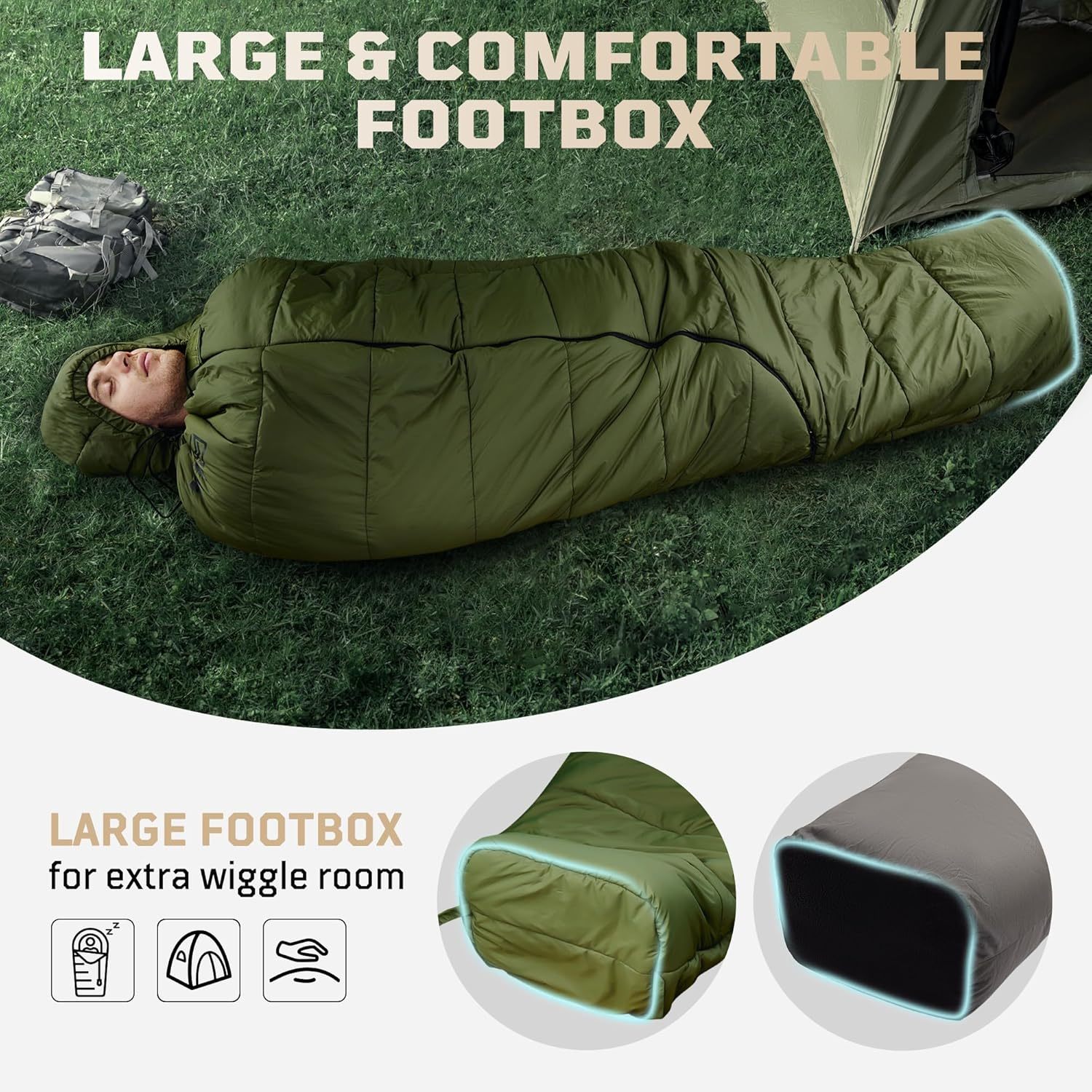 Mummy Sleeping Bag For Adults, Cold Weather Camping Sleeping Bags (26-36℉) With