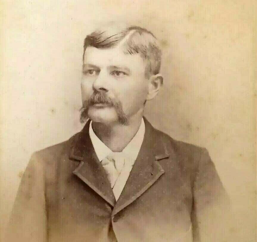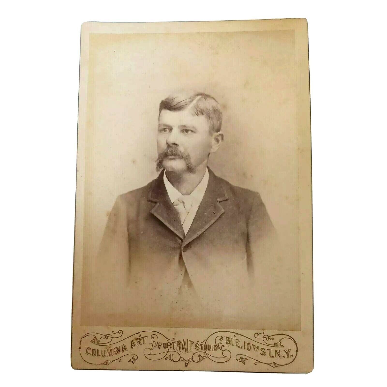 Cabinet Card Photo Handsome Man Large Horseshoe Mustache Columbia Studio NY