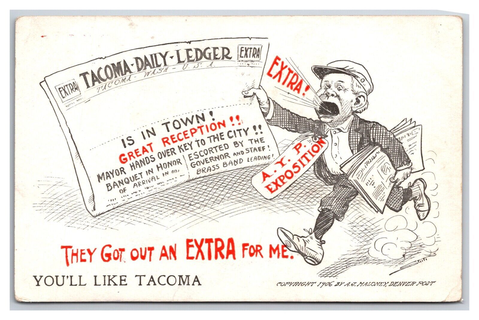 Newsie Comic Tacoma Daily Ledger Newspaper Tacoma Washington WA DB Postcard G19