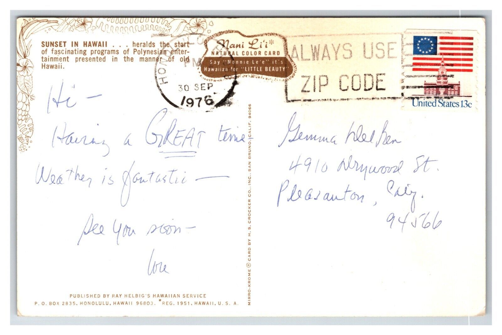 Sunset Luau Aloha From Hawaii HI Chrome Postcard T7