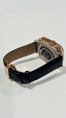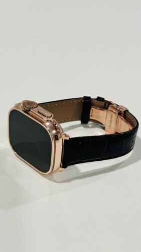 24k ROSE Gold Plated Apple Watch ULTRA 2 49mm Black Leather Band CUSTOM Lux Box