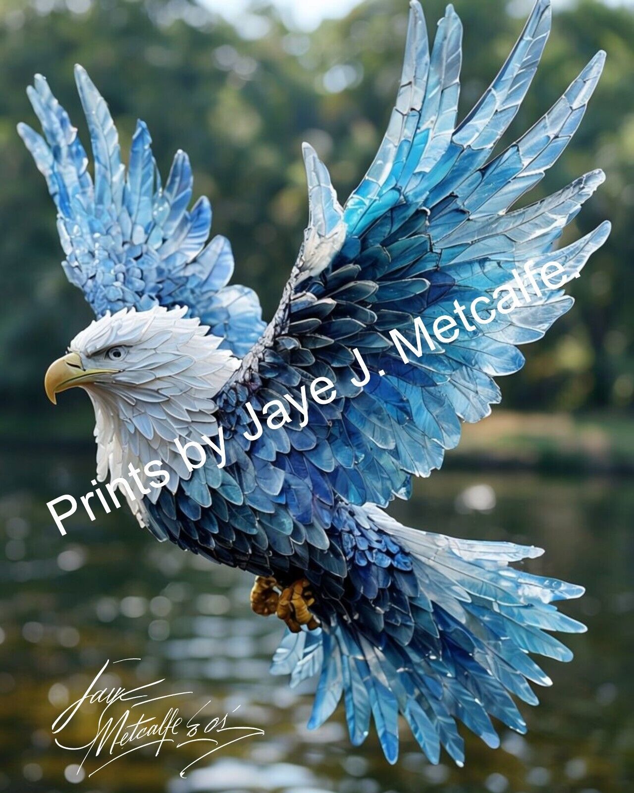 Flying Blue and White Bald eagle Wall Art 16x20 Canvas Romantic Decor Art Color.