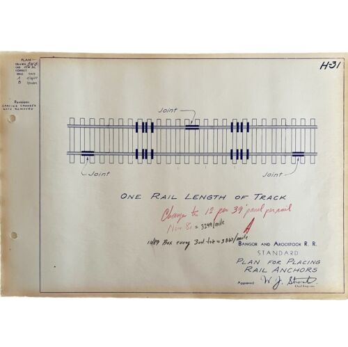 1958 Railroad Bangor Aroostook Track Rail Anchor Placement Blueprint H31 DWDD13