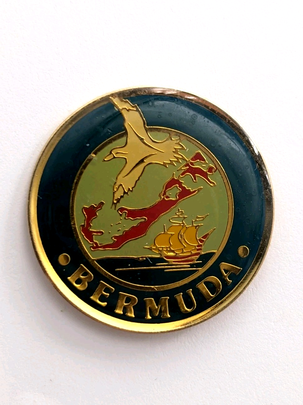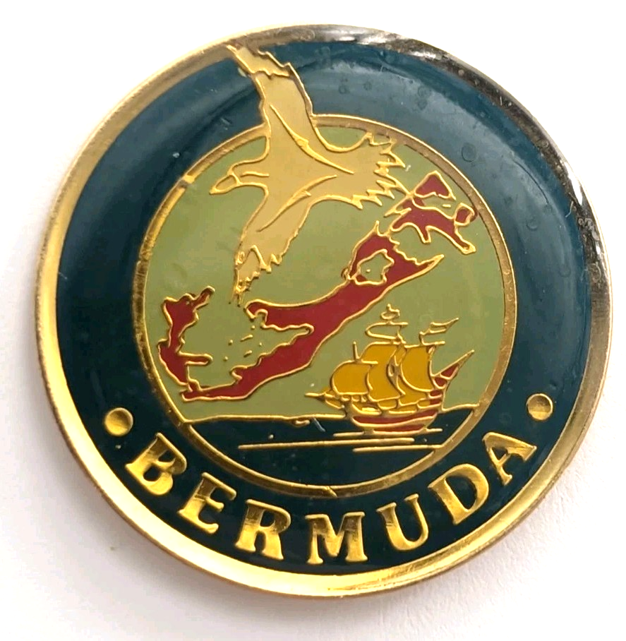 VTG Bermuda Souvenir Pin British Island Map Bird Ship North Atlantic Travel