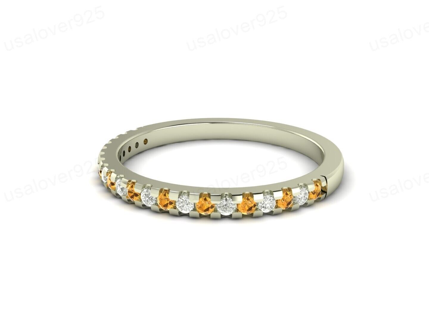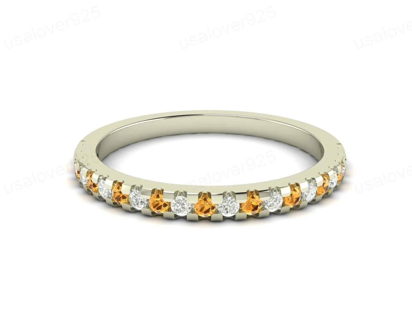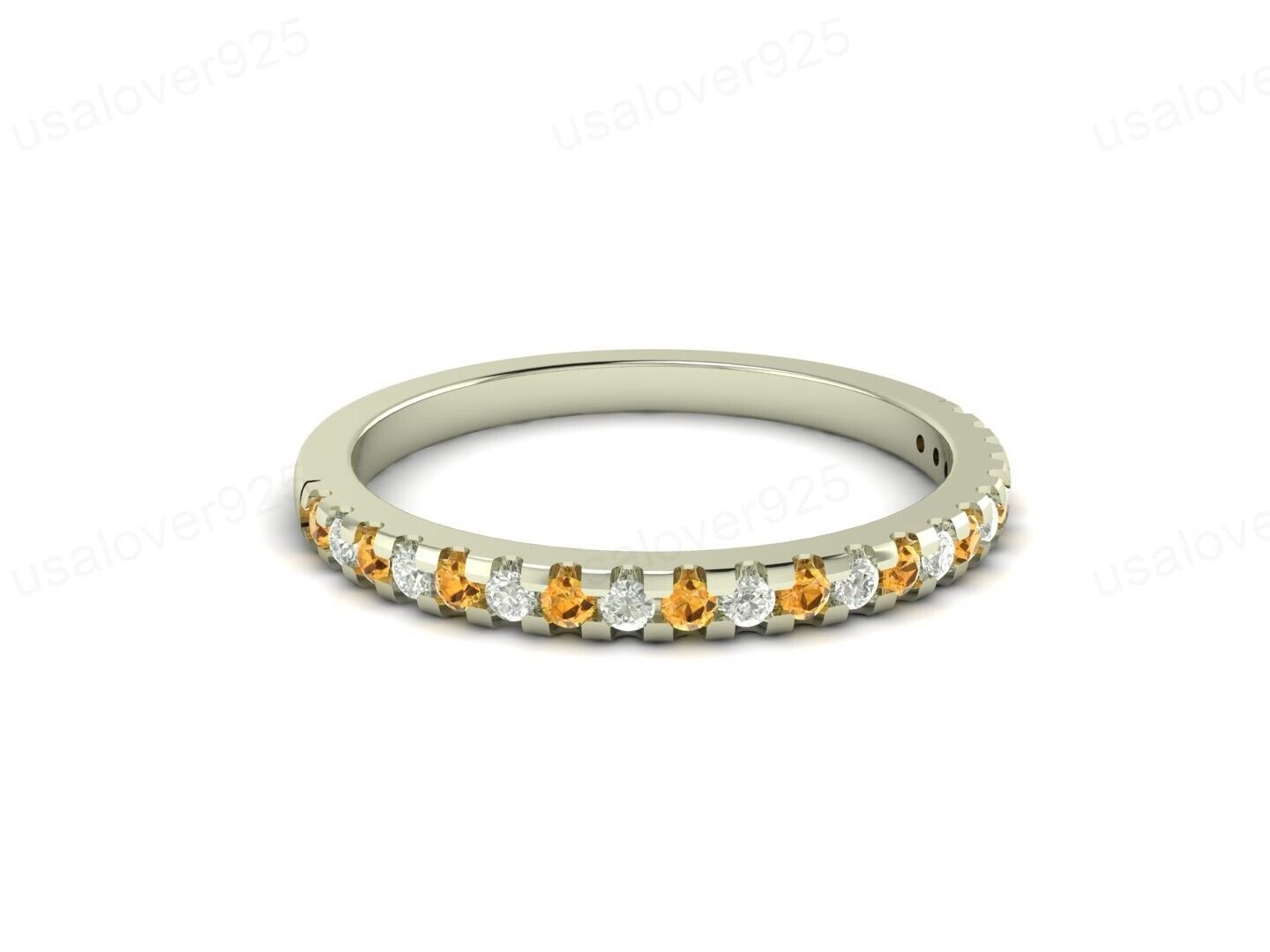 Natural Citrine 2 MM Stone Eternity Women Ring, 925 Sterling Silver Jewelry