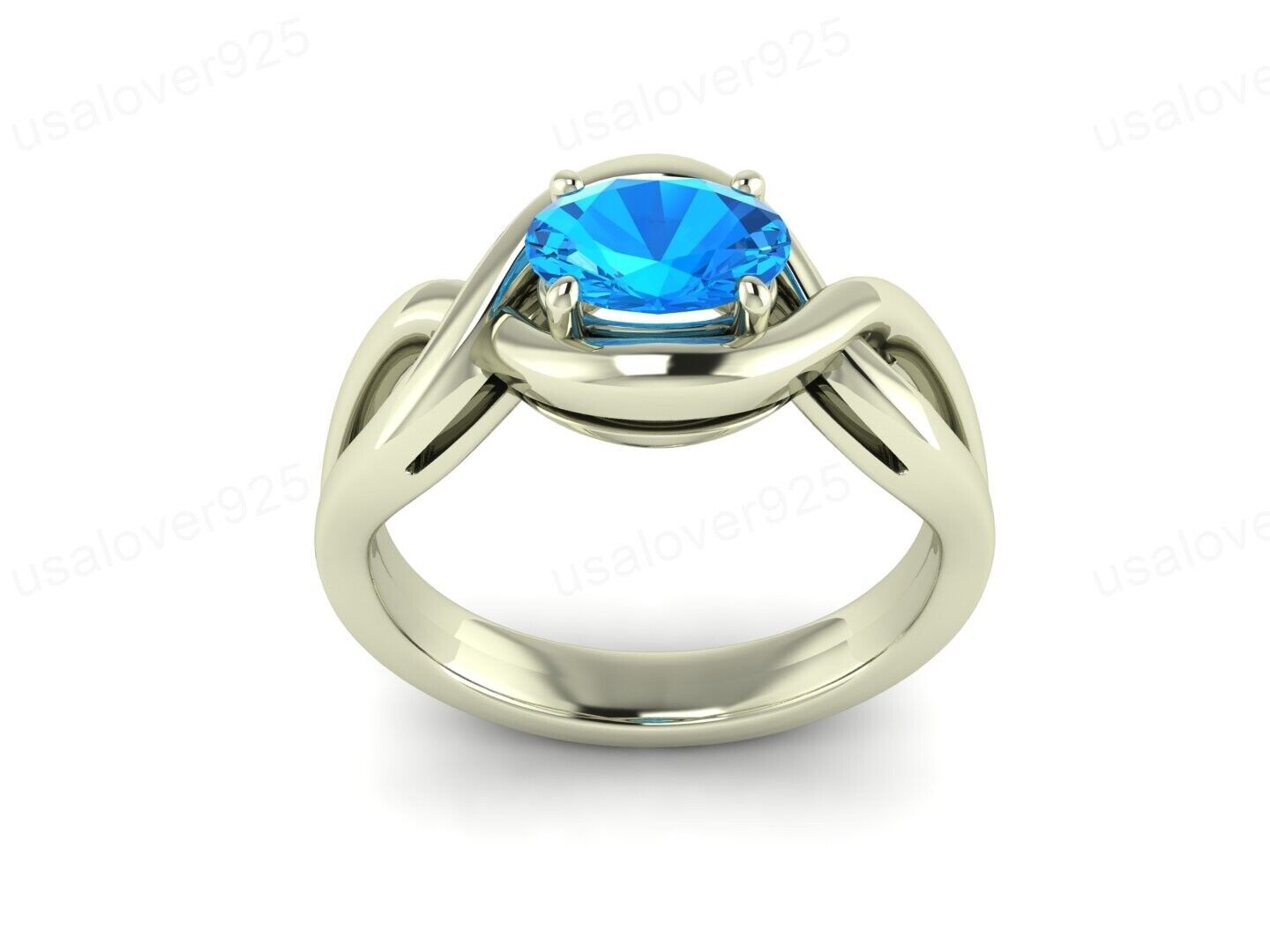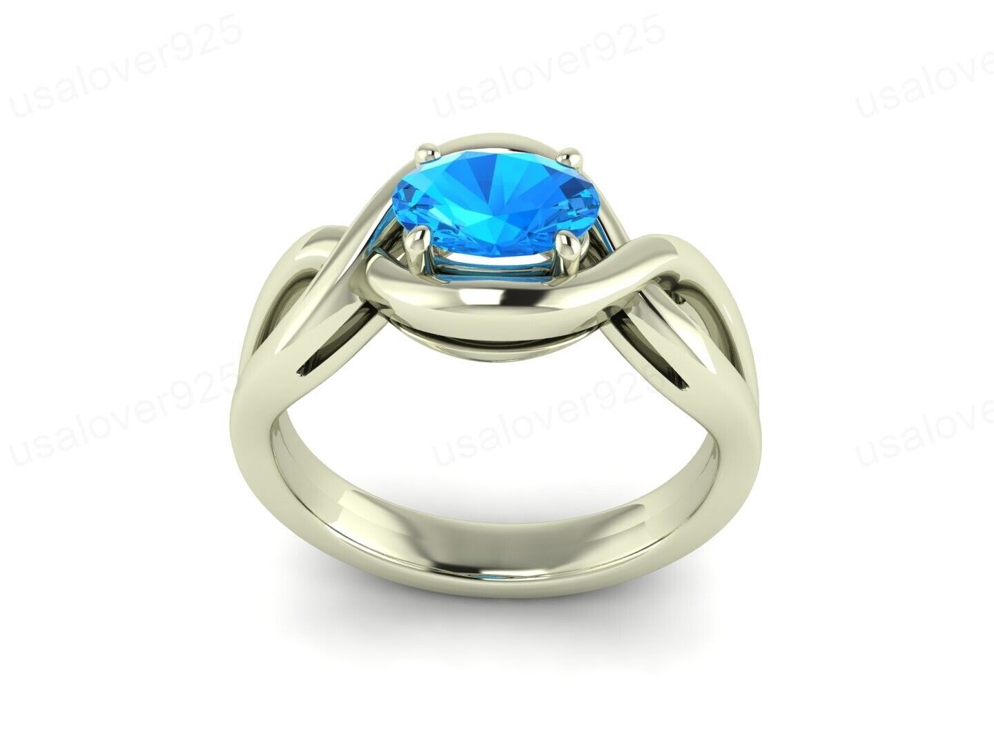 Blue Topaz Stone Statement Ring, 925 Sterling Silver Promise Jewelry