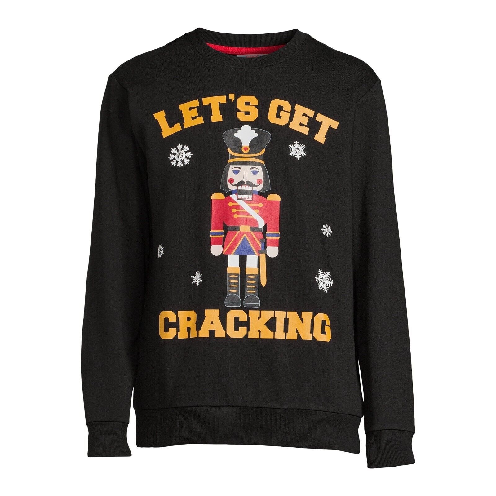 Holiday Time Men's Get Cracking Crewneck Fleece Sweatshirt, Black Size S(34-36)