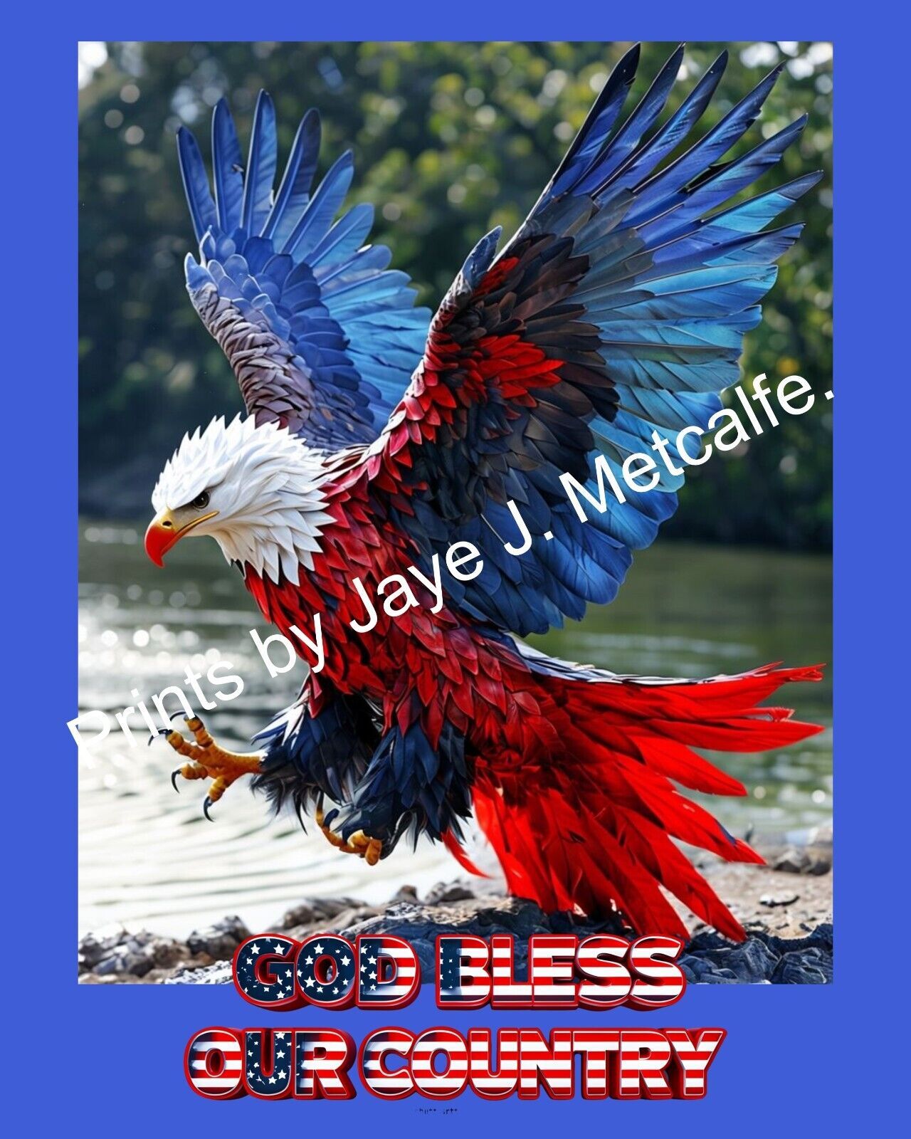 Flying Colorful Bald eagle Wall Art 8X10 Print Romantic Decor Art Color.