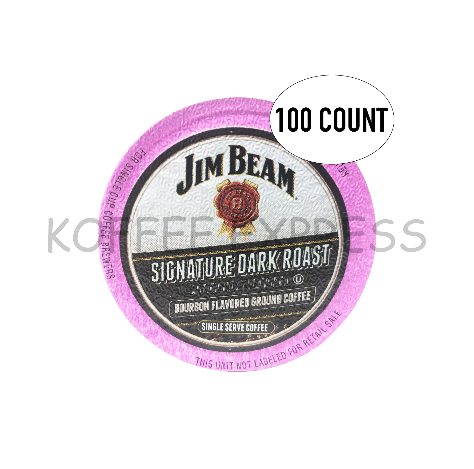 This sale is for 100 cups of Jim Beam - Signature Dark Roast Ground Coffee Single Serve cups