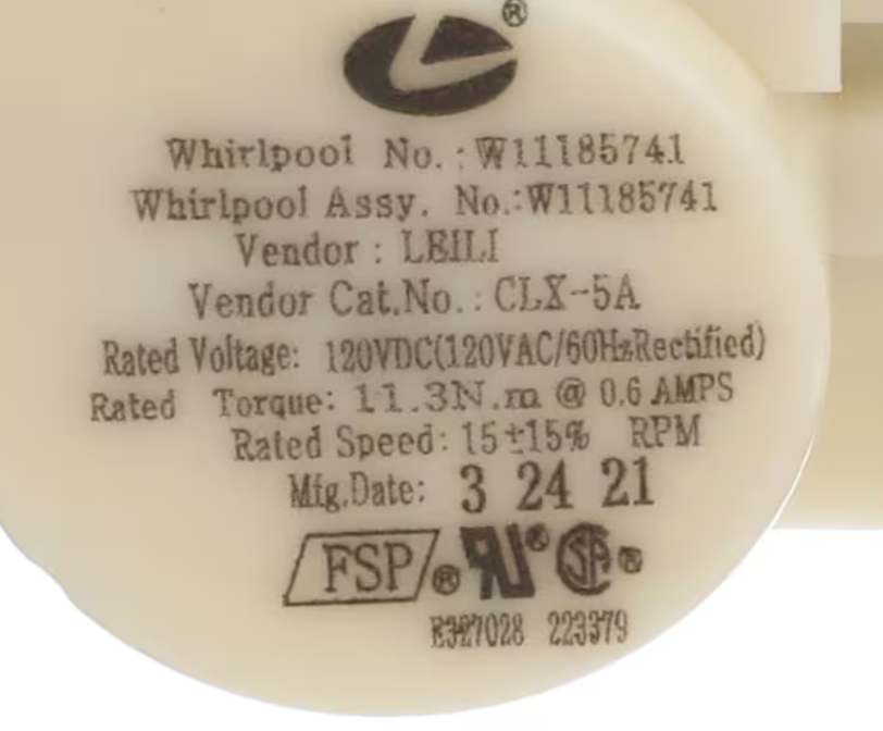 Restore reliable ice dispensing in your refrigerator with the Whirlpool CLX-5A auger motor, also known as part number W11185741. This OEM 120V, 60Hz motor powers the auger inside the ice bin, rotating the spiral blade that moves ice toward the dispenser chute. If your ice maker is making ice but not dispensing it properly, this motor is the essential fix.