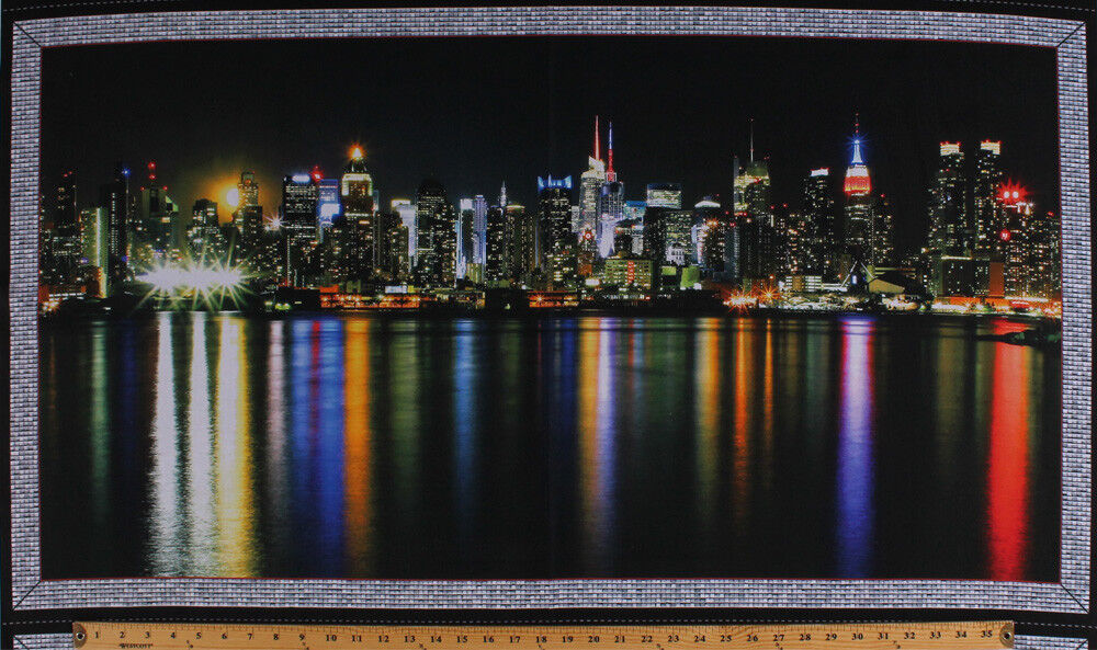 23.5" X 44" Panel City Skyline Buildings Night Cotton Fabric Panel D364.16